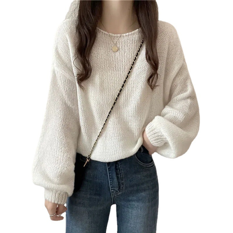Новинка осенне-зимнее однотонное Свободное пальто с открытыми плечами в Корейском стиле, Толстый Пуловер с иглами, свитер, верхняя одежда в ленивом стиле, вязаный свитер для женщин