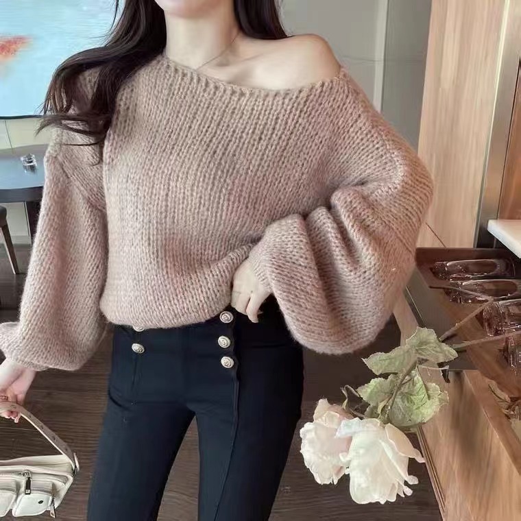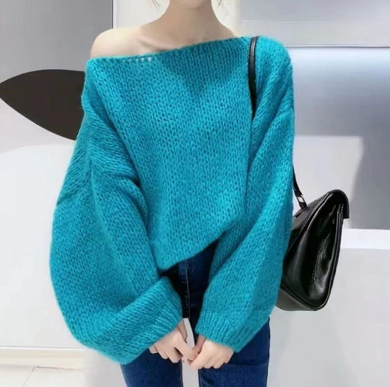 Главная страница > Новинка осенне-зимнее однотонное Свободное пальто с открытыми плечами в Корейском стиле, Толстый Пуловер с иглами, свитер, верхняя одежда в ленивом стиле, вязаный свитер для женщин