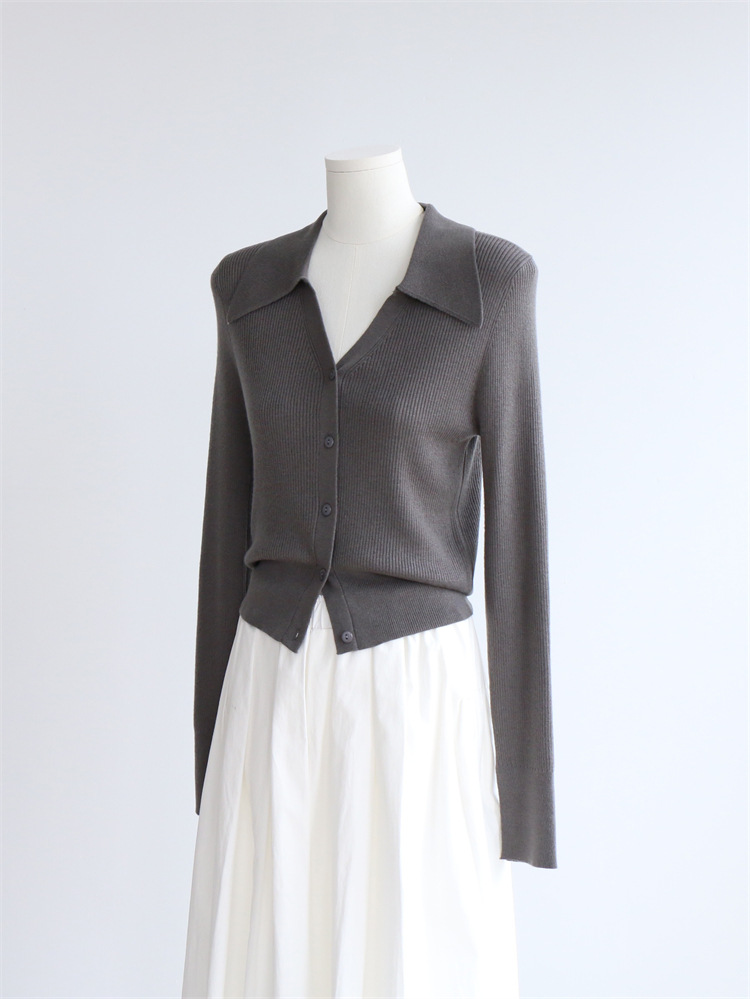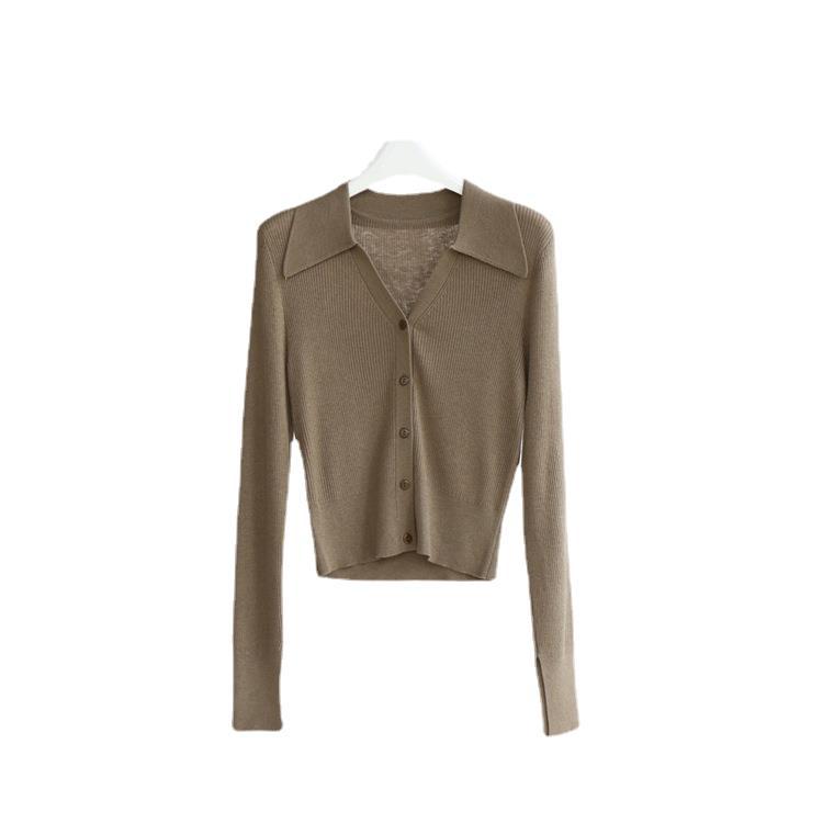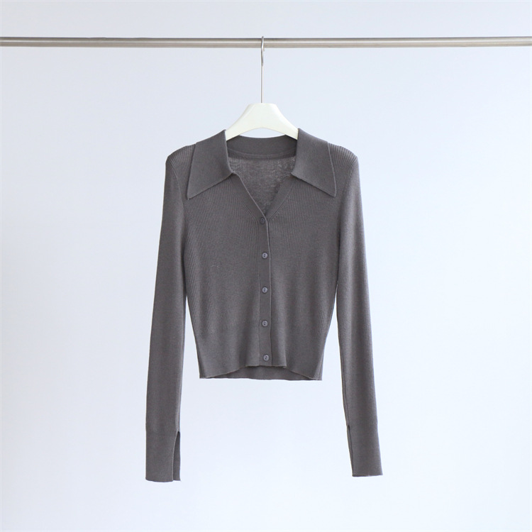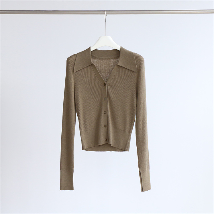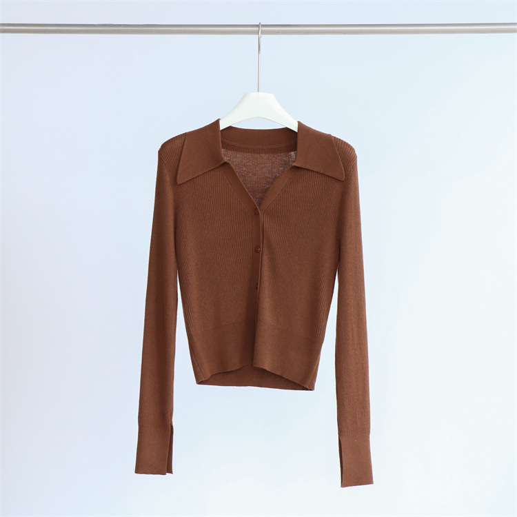 Главная страница > Элегантный пригородный шерстяной свитер с длинным рукавом и лацканами, женский кардиган, осенне-зимний однотонный короткий топ, Новинка