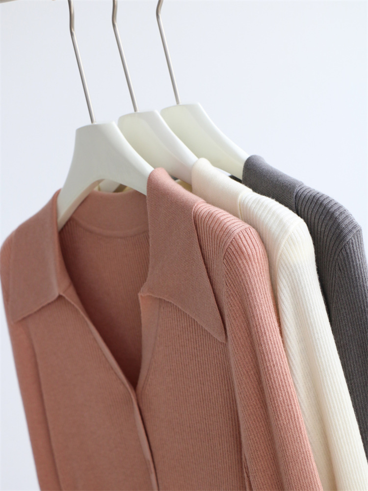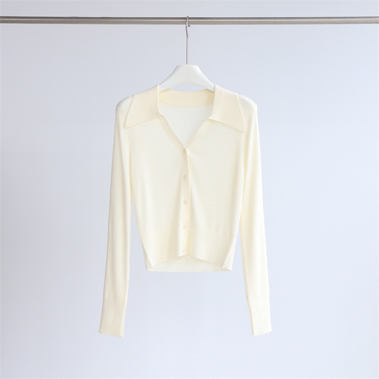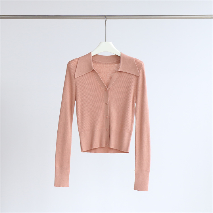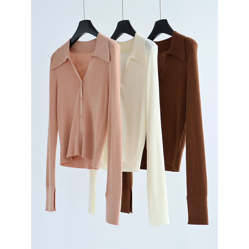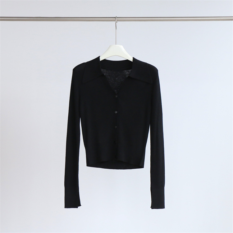 Главная страница > Элегантный пригородный шерстяной свитер с длинным рукавом и лацканами, женский кардиган, осенне-зимний однотонный короткий топ, Новинка