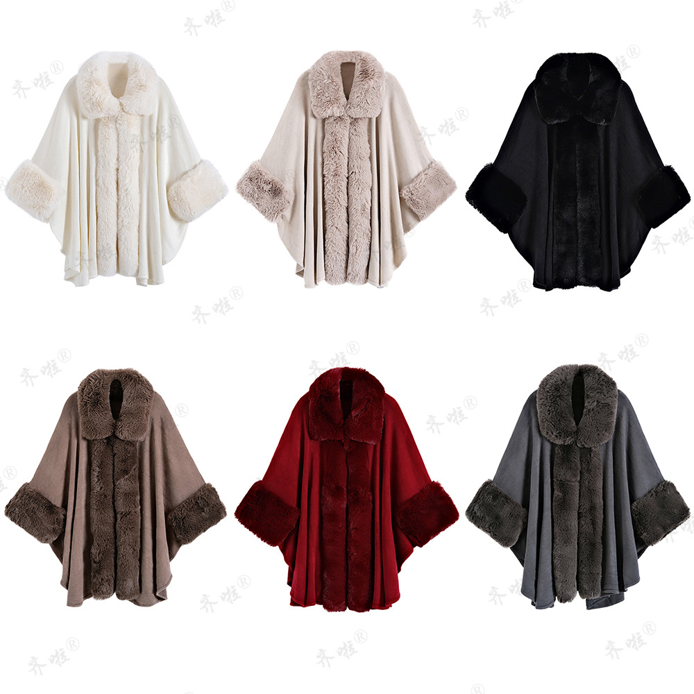 Европейский и американский трансграничный имитация меха квадратный накидка свободный большой размер теплый длинный темперамент вязаный шерстяной рукав шаль женский