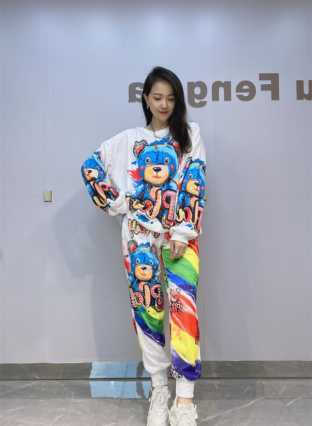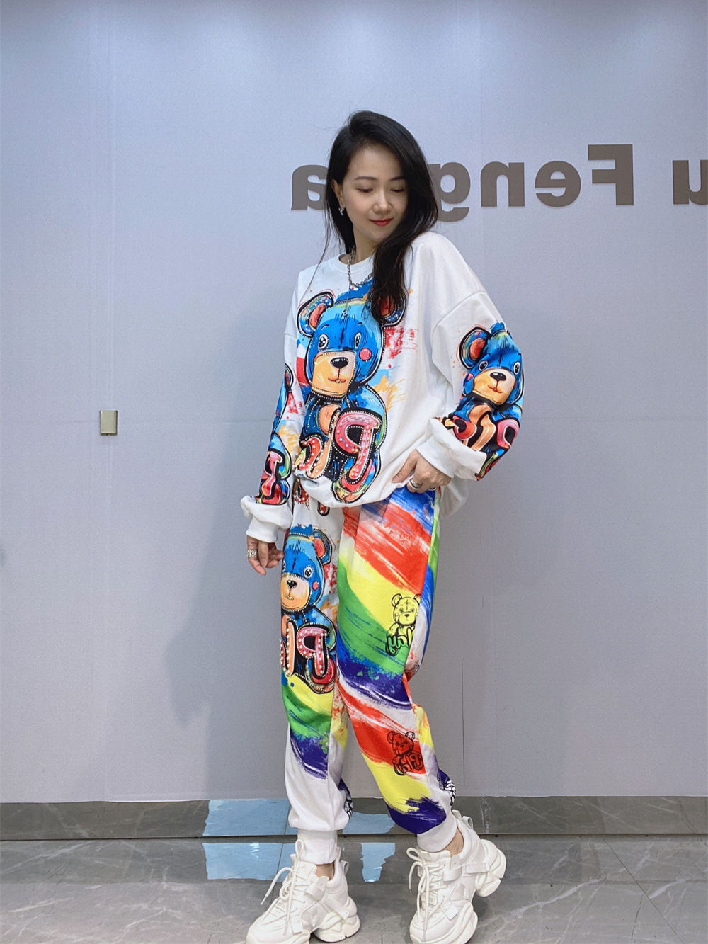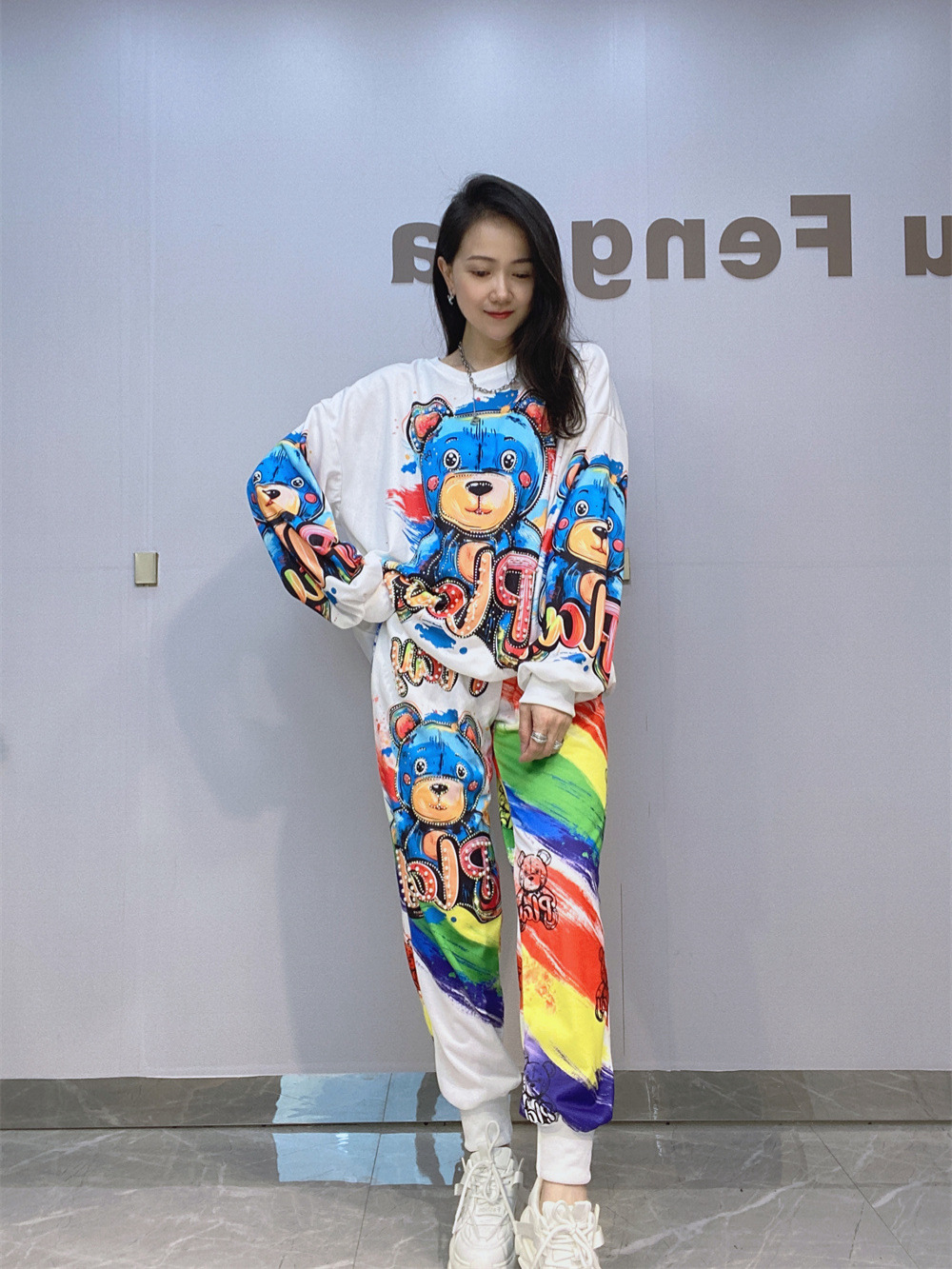 2025 трансграничный европейский и американский женский свитшот с круглым вырезом и длинными рукавами, комплект из двух предметов для женщин, осенний высококачественный костюм большого размера с принтом горячих бриллиантов