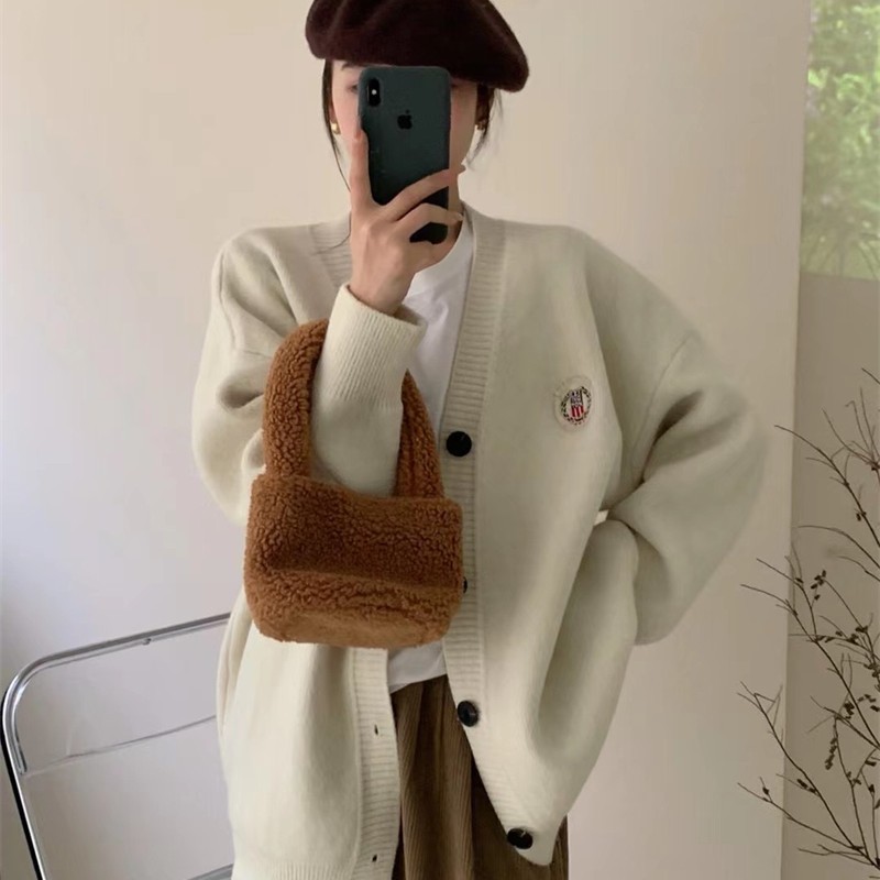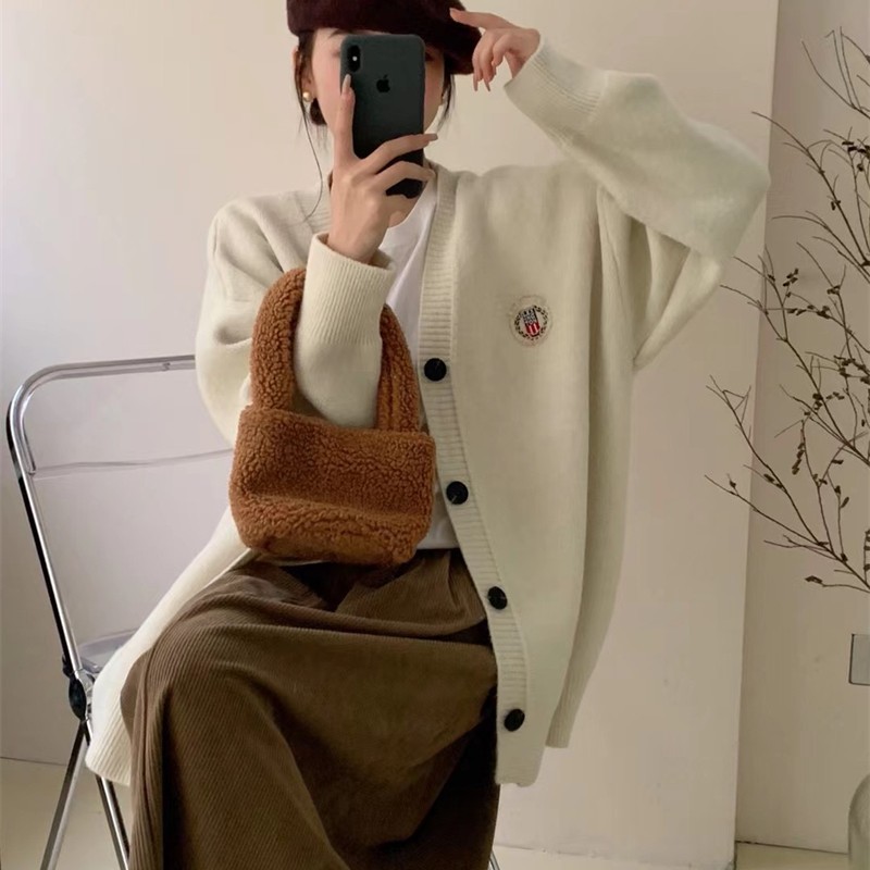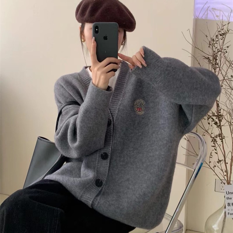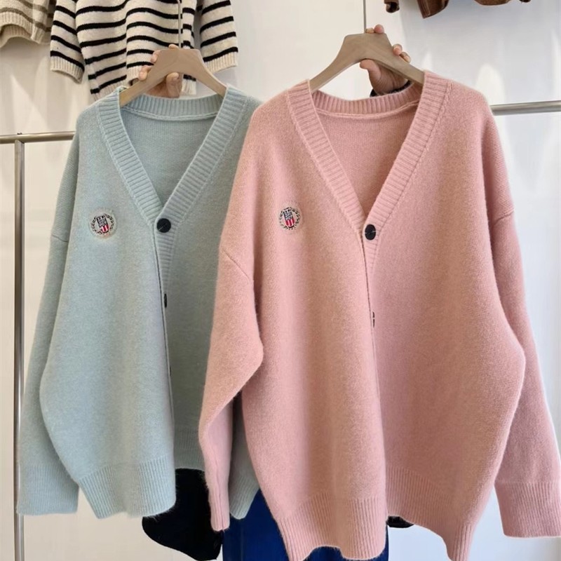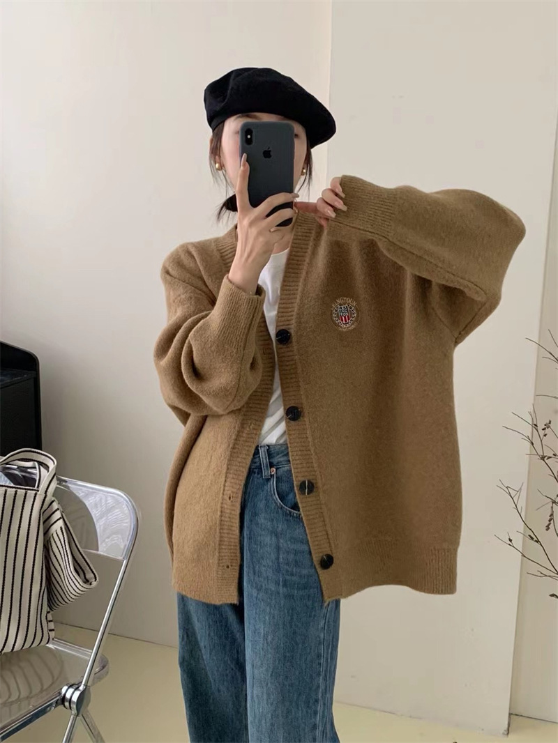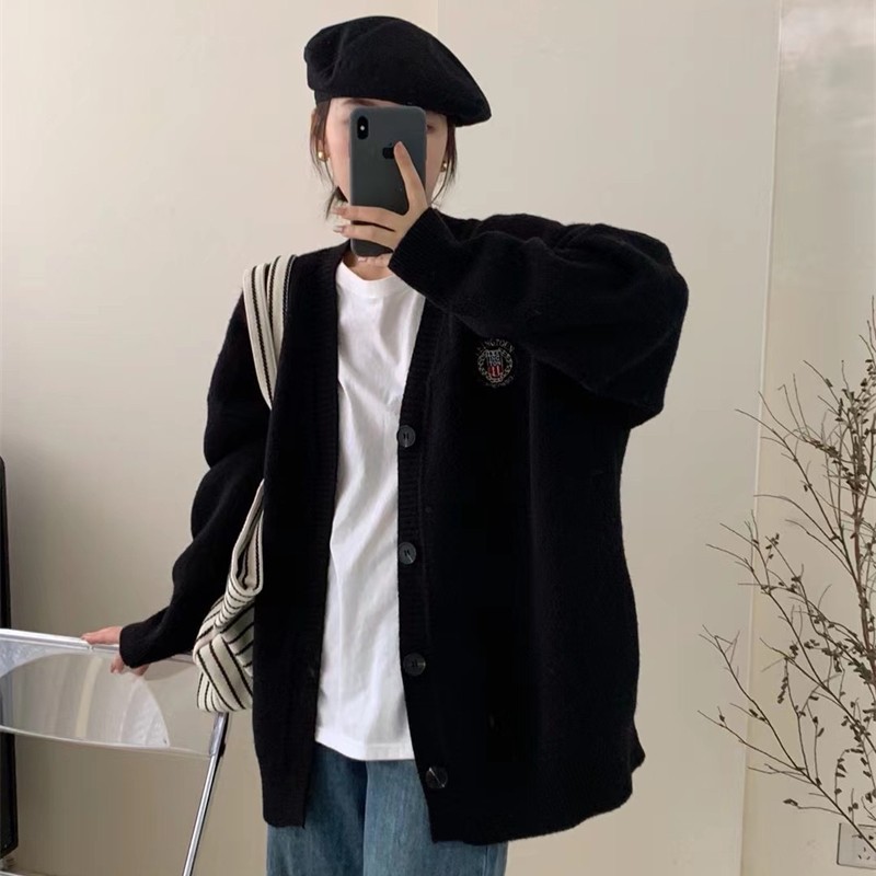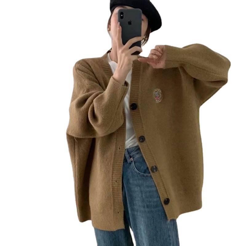 Главная страница > Корейский ленивый Ветер Свободный свитер женский 2022 осень и зима Новый вязаный кардиган с вышивкой топ 3012