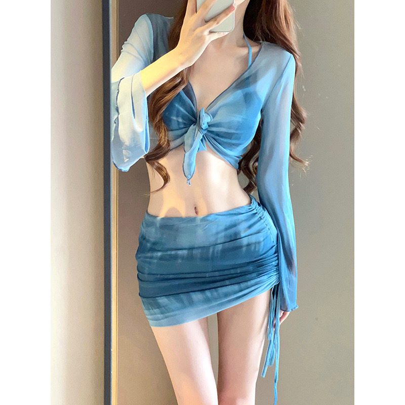 Главная страница > Новый модный женский купальник из четырех частей, сплит-юбка, консервативный купальник, бикини для моря и горячих источников