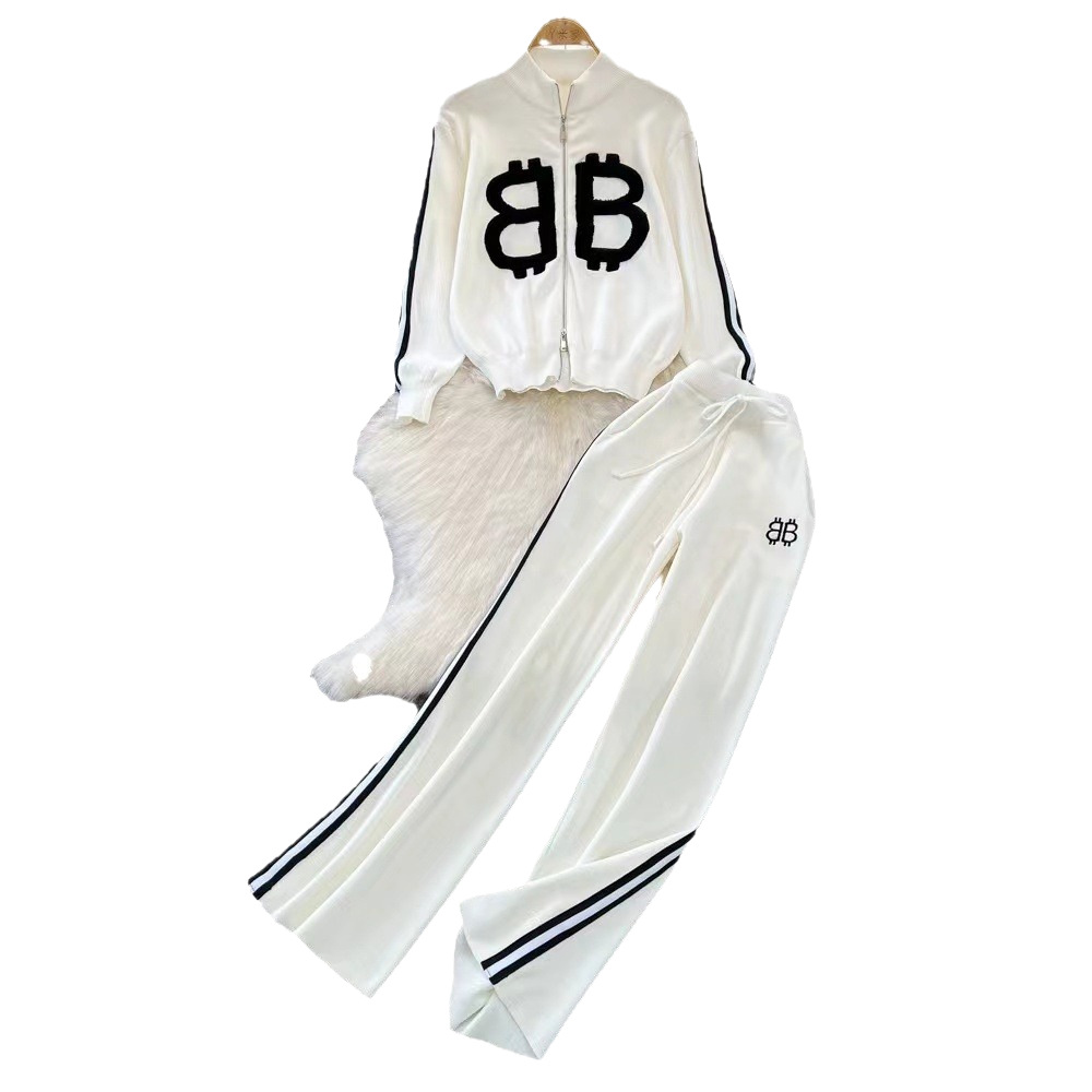 Главная страница > Модный костюм женский осенний и зимний длинный рукав с воротником-молнией трикотажное пальто из двух частей повседневные брюки с высокой талией и тонкими широкими ногами