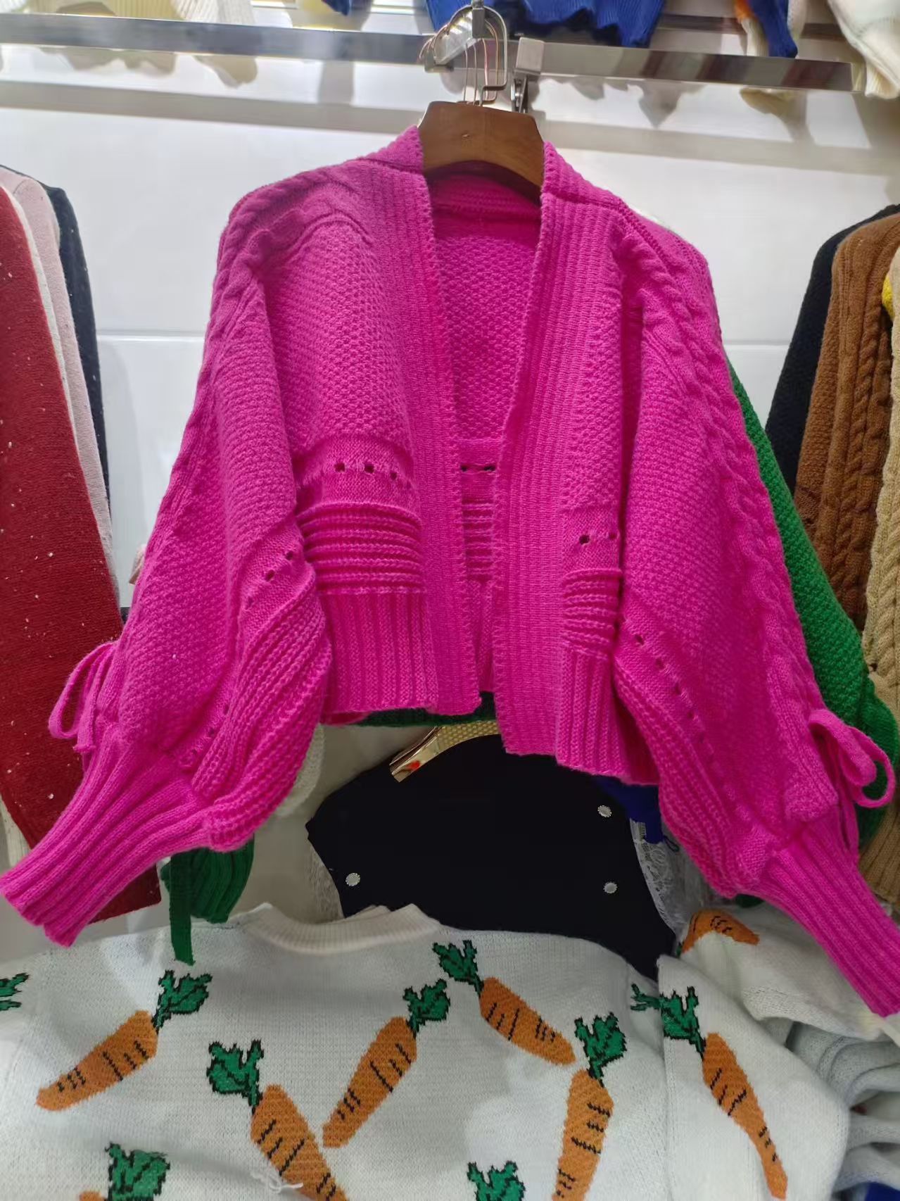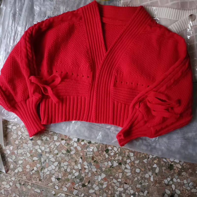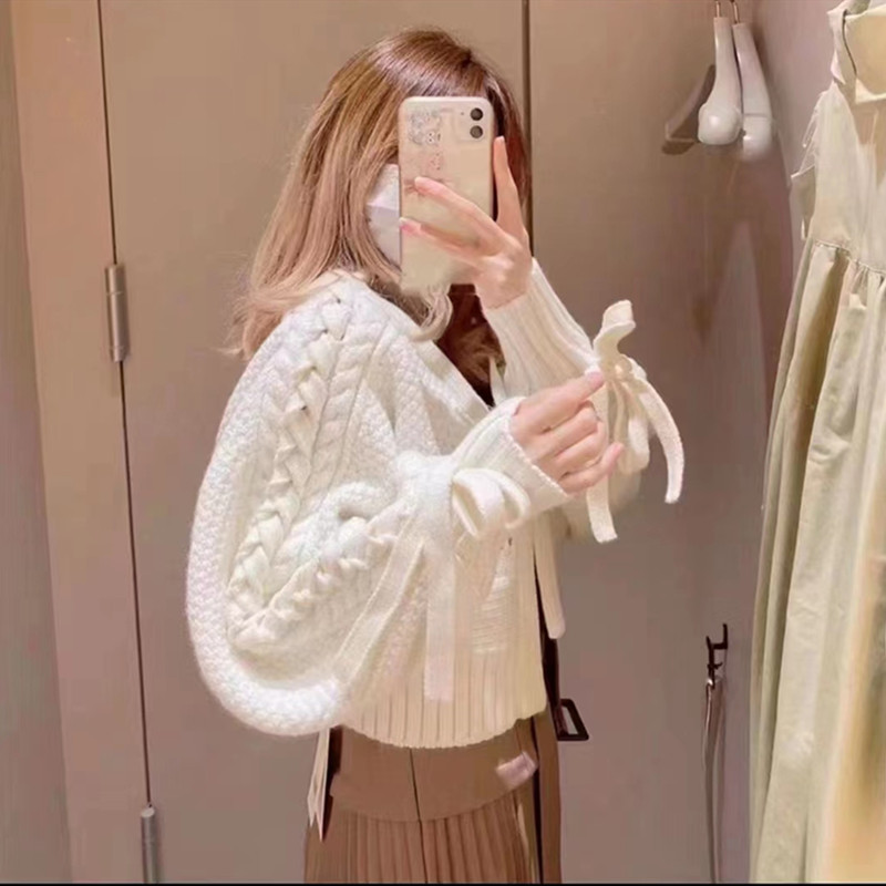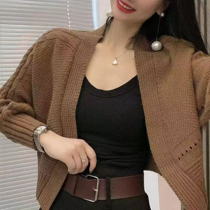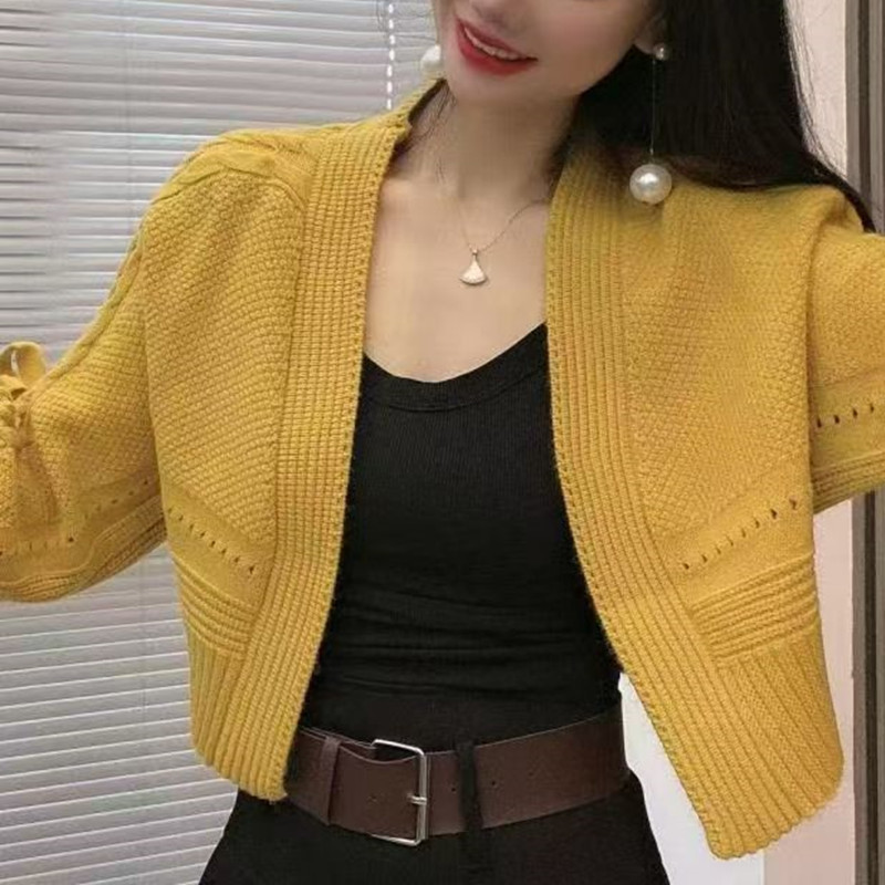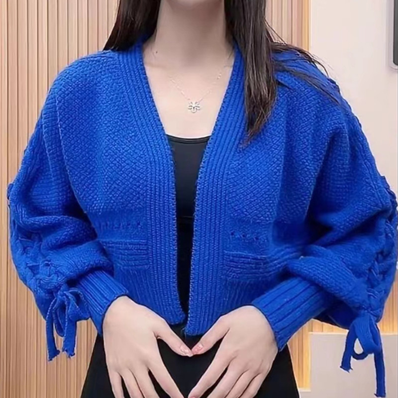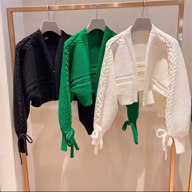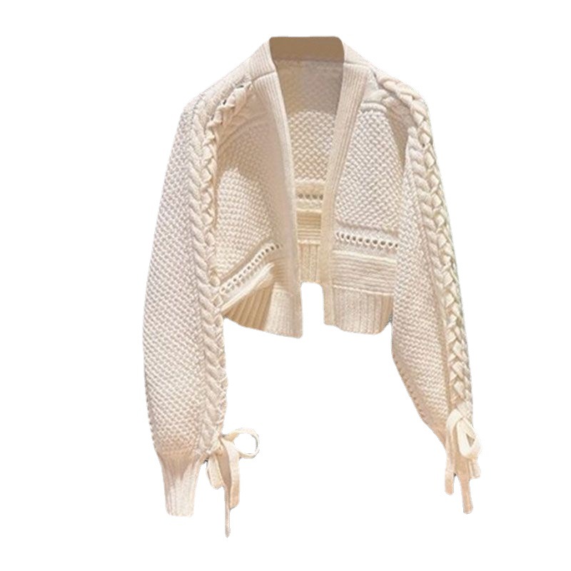 Главная страница > Маленькая шаль Леди 2022 осень и зима Новый вязаный кардиган-пальто с коротким воротником твист однотонный V-образный милый красивый кружево