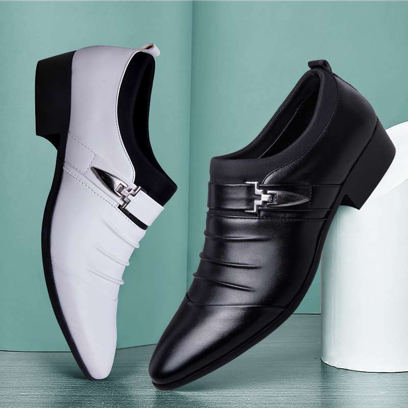 Главная страница > Мужские кожаные туфли с острым носком, осенняя деловая официальная одежда, дышащие повседневные свадебные туфли в корейском стиле, британский молодежный тренд, парикмахерские туфли