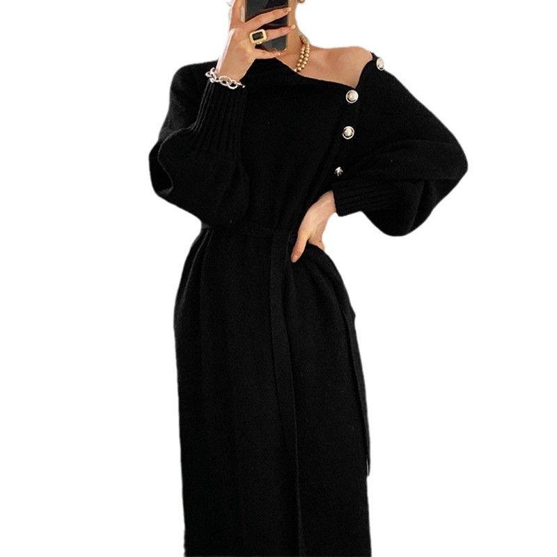 Главная страница > Осень-зима в японском и корейском стиле, элегантное подходящее пальто во французском стиле, внутренний свитер, длинное вязаное платье выше колена, женское