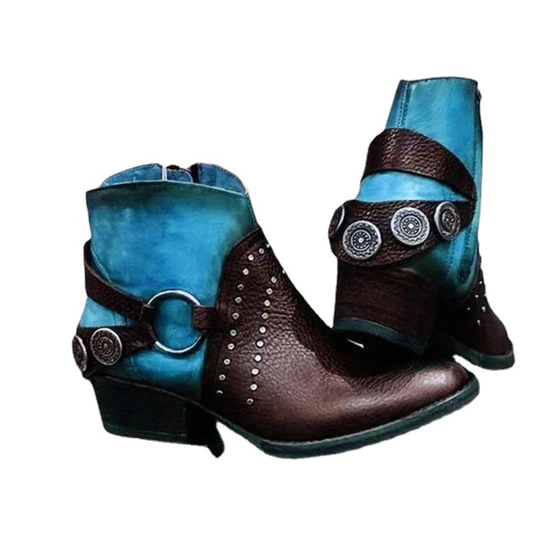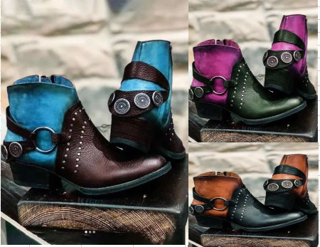 Главная страница > Круглый носок низкий каблук Colorblock плюс размер женские модные сапоги ботильоны