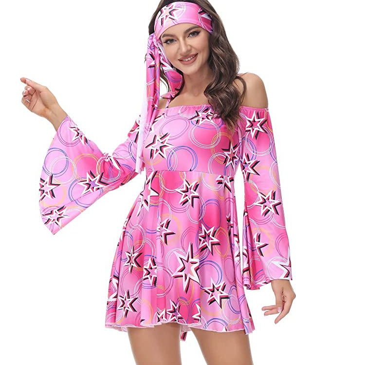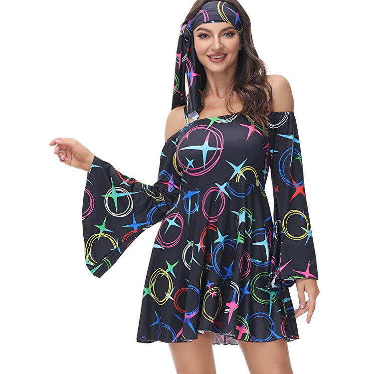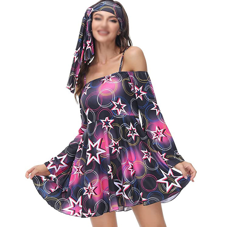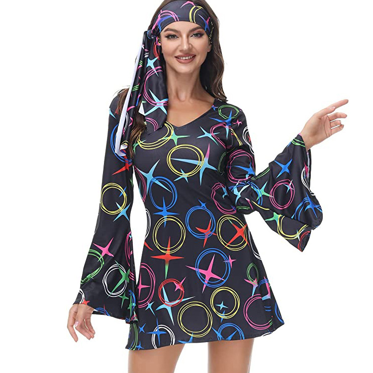 Главная страница > Новое платье с принтом в стиле хиппи-диско 70-х годов для женщин, осенняя коллекция Amazon 2024, кросс-бордер