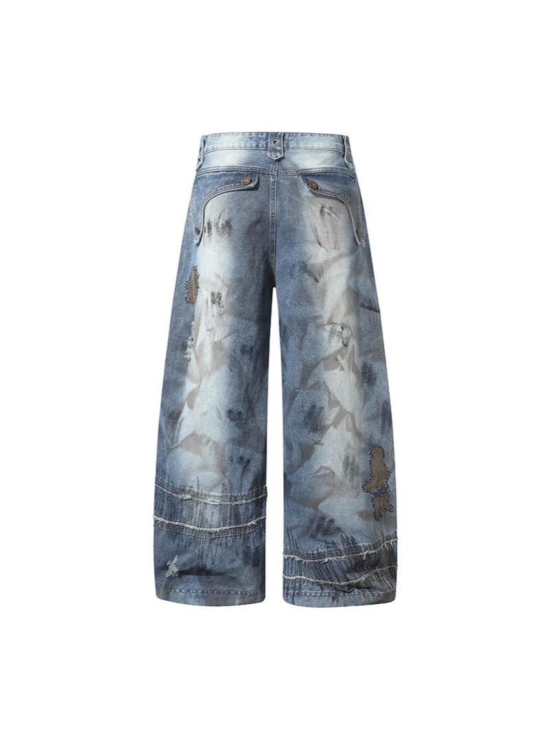 Главная страница > Тяжелые джинсы с произвольной игольной вышивкой в американском уличном стиле для мужчин и женщин, свободные широкие брюки в стиле пустыни