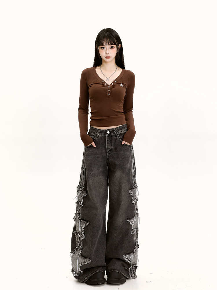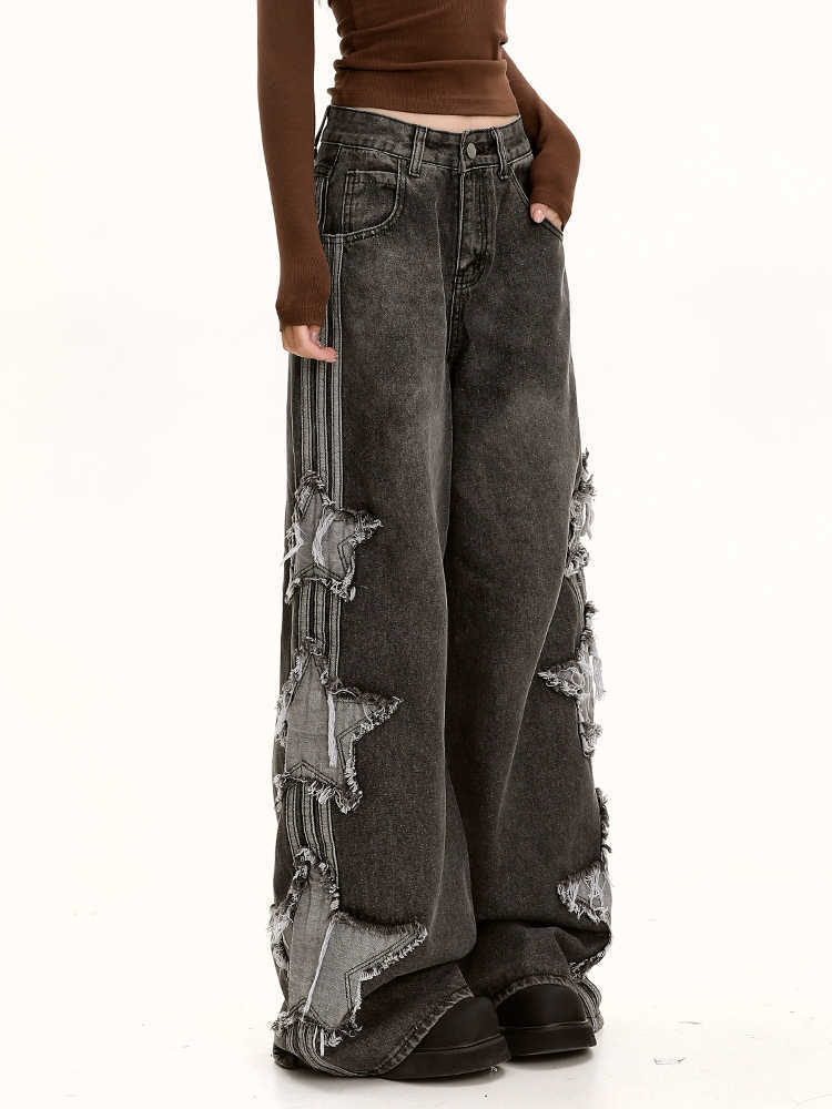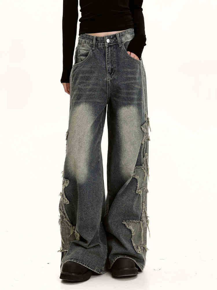 Ретро вымытые звезды с тканью джинсы для мужчин и женщин 2025 года ранняя весна прилив