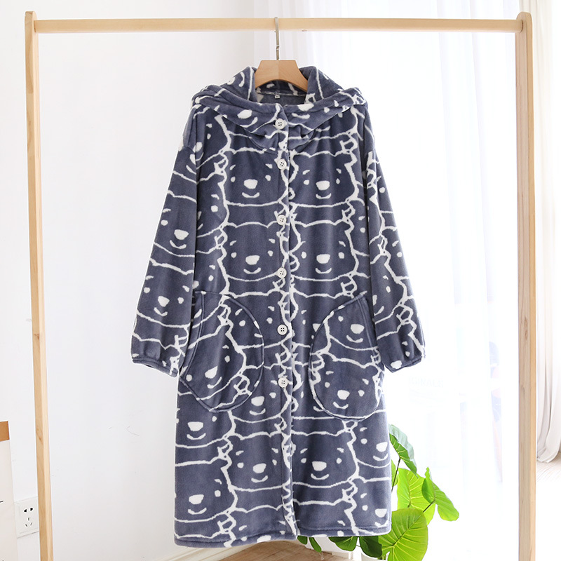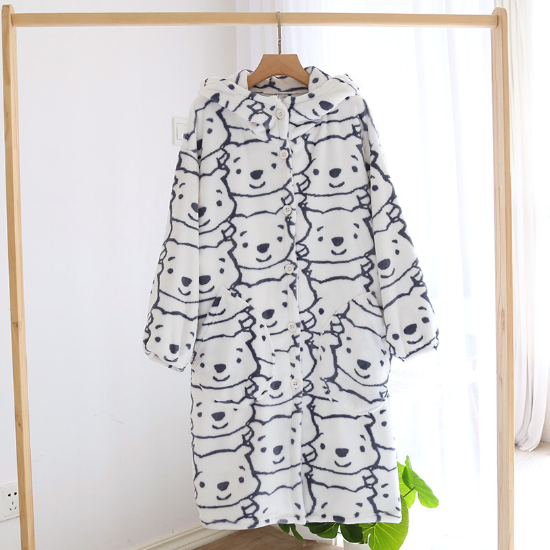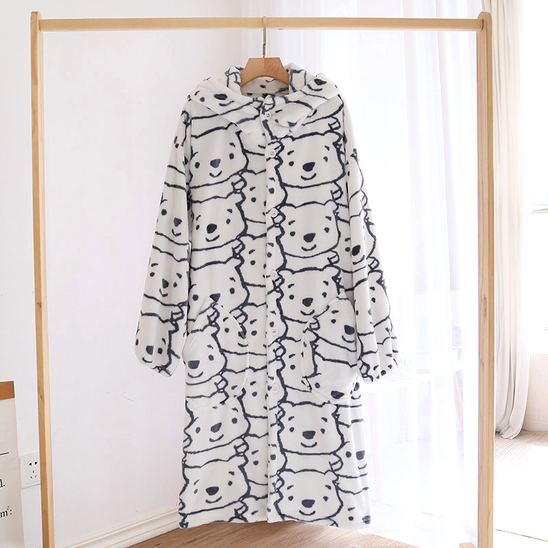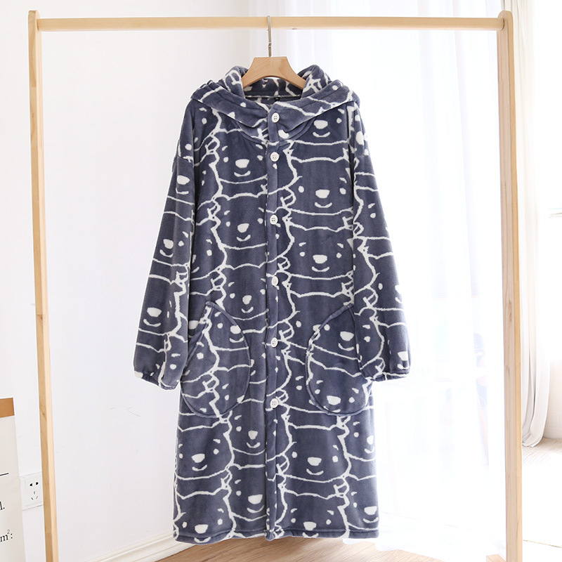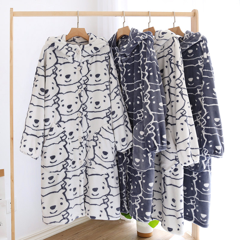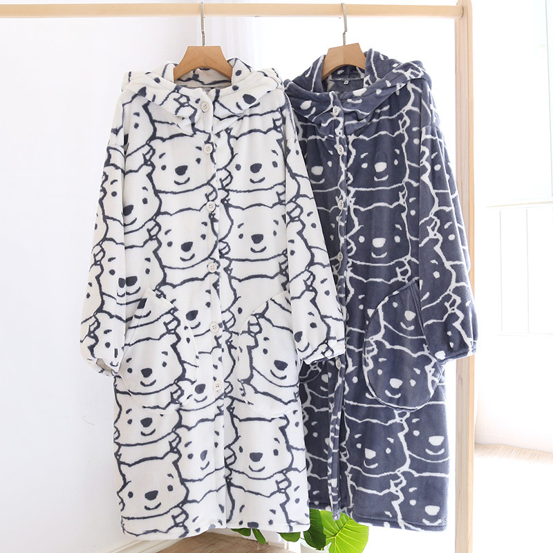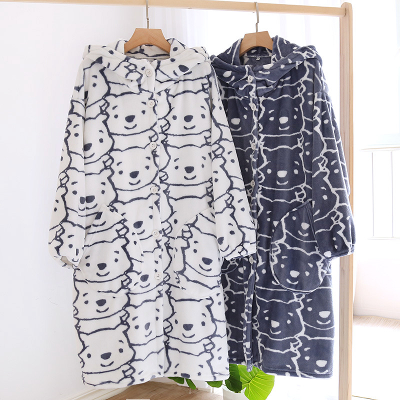 Главная страница > Пара пижамы Осень и зима коралловый флис халат утолщенная флисовая подкладка фланель мультфильм Ночная рубашка с капюшоном Домашняя одежда зима
