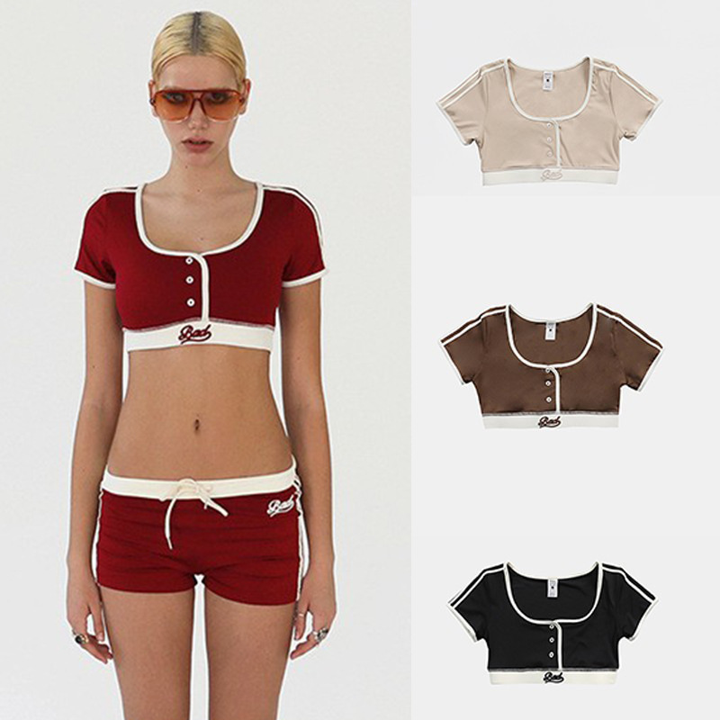 Главная страница > Корейский badblood bcac серия американских горячих девушек короткая футболка женская короткая рубашка с короткими рукавами U-образный воротник нишевые спортивные топ