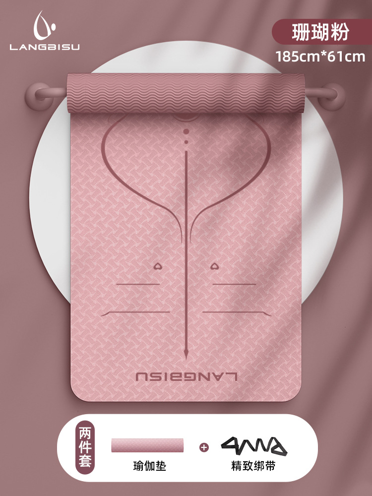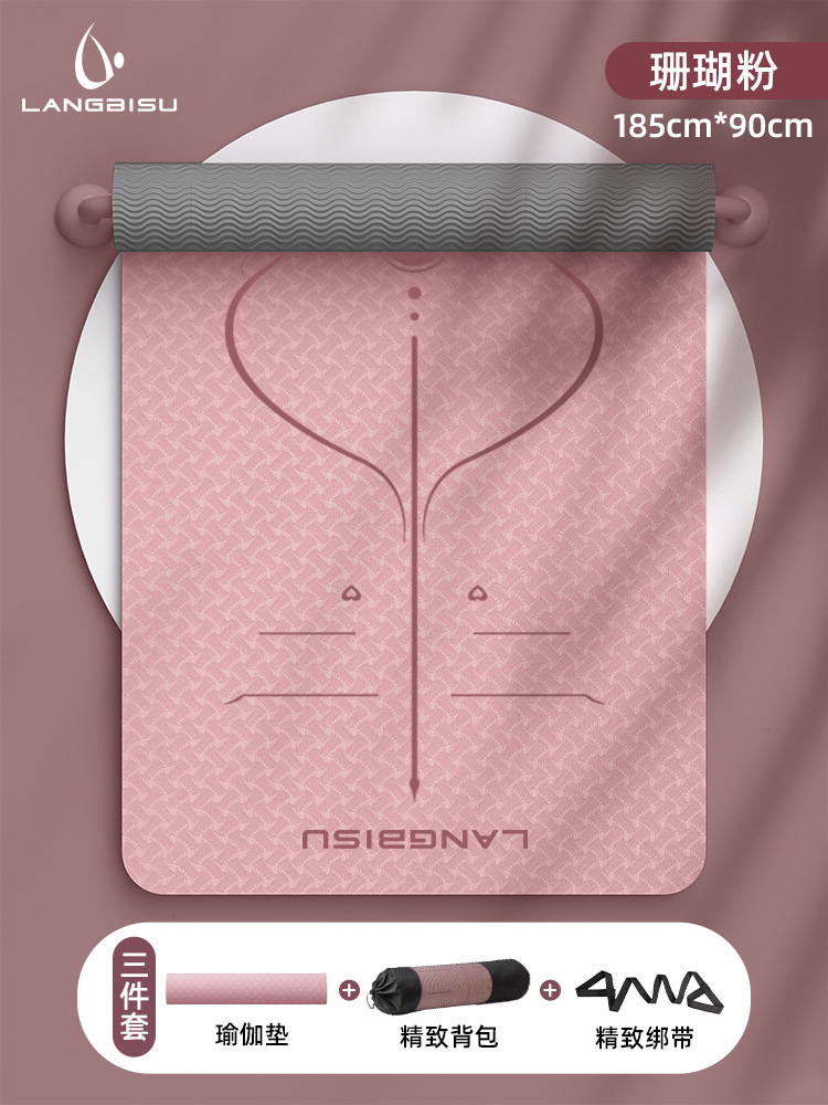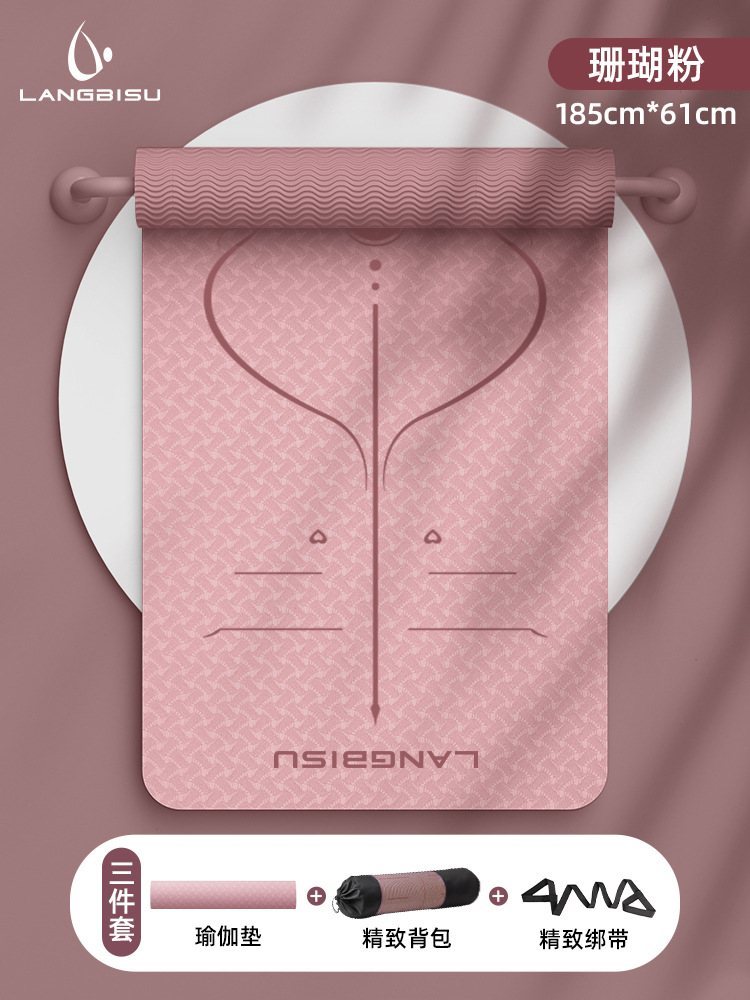Кораллово-розовая линия осанки 185*90 см, комплект из трех предметов [коврик для йоги + веревка + рюкзак]