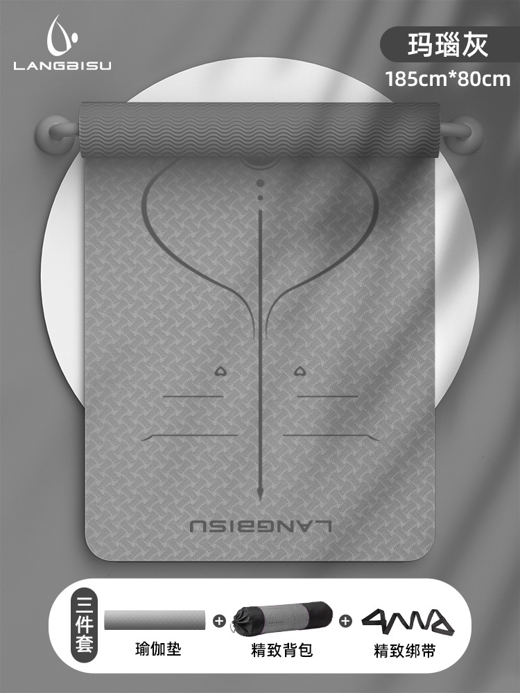 Серая агатовая линия осанки, 185*80 см, комплект из трех предметов [коврик для йоги + веревка + рюкзак]