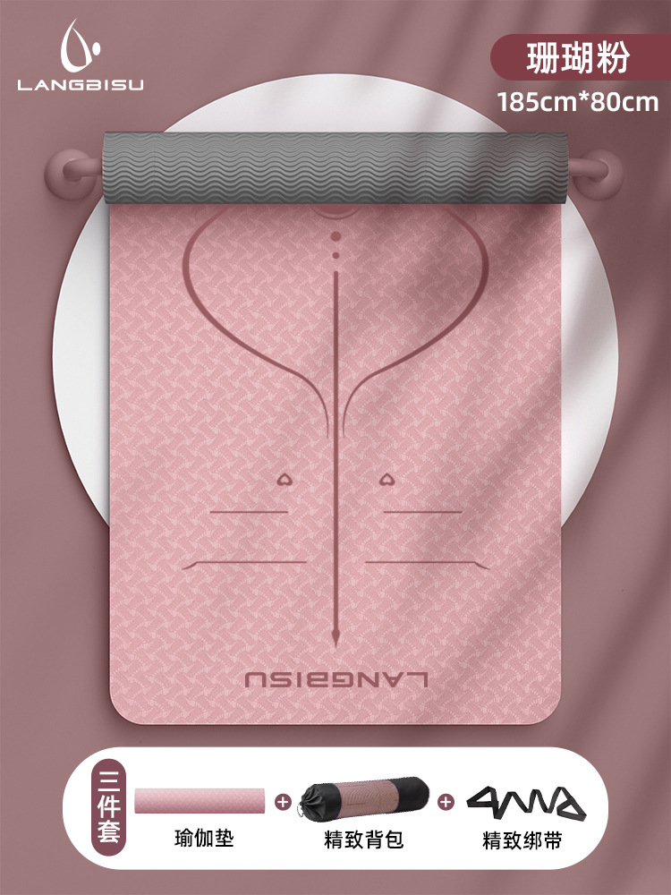 Кораллово-розовая линия осанки 185*80 см, комплект из трех предметов [коврик для йоги + веревка + рюкзак]