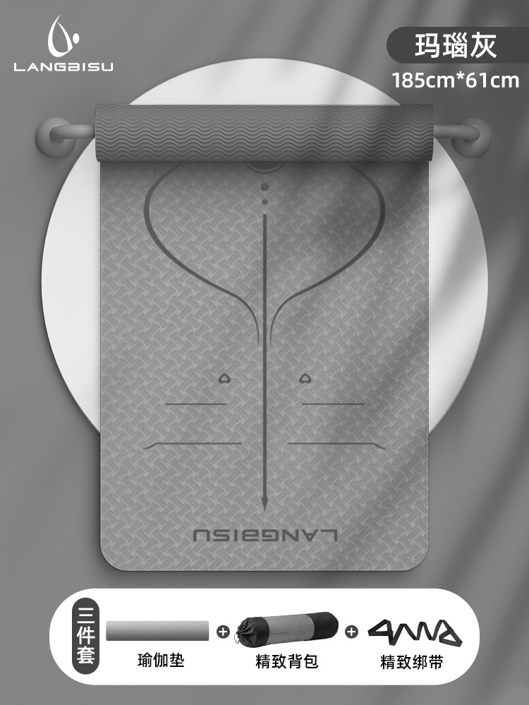 Серая агатовая линия осанки, 185*90 см, комплект из трех предметов [коврик для йоги + веревка + рюкзак]