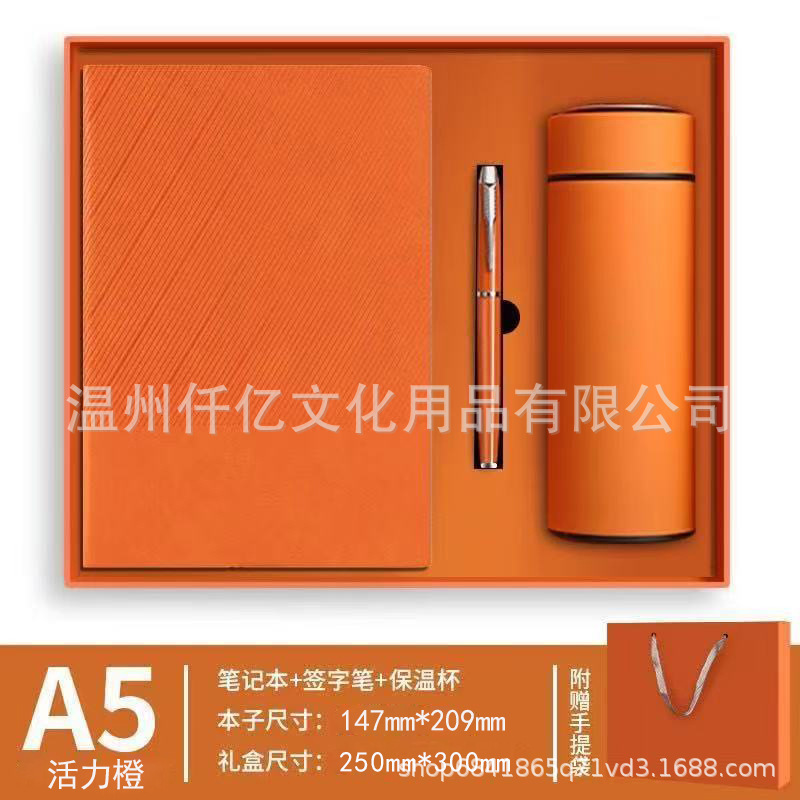 Яркий оранжевый [Блокнот + ручка для подписи + чашка-термос]