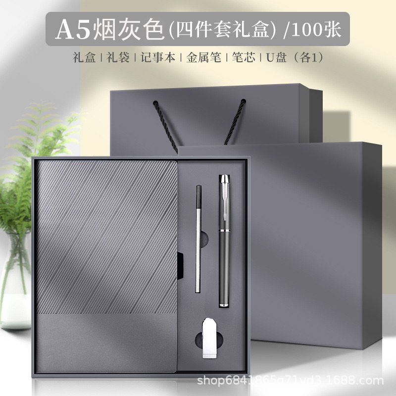 Дымчато-серый + ручка для подписи + стержень + подарочный набор + U-диск