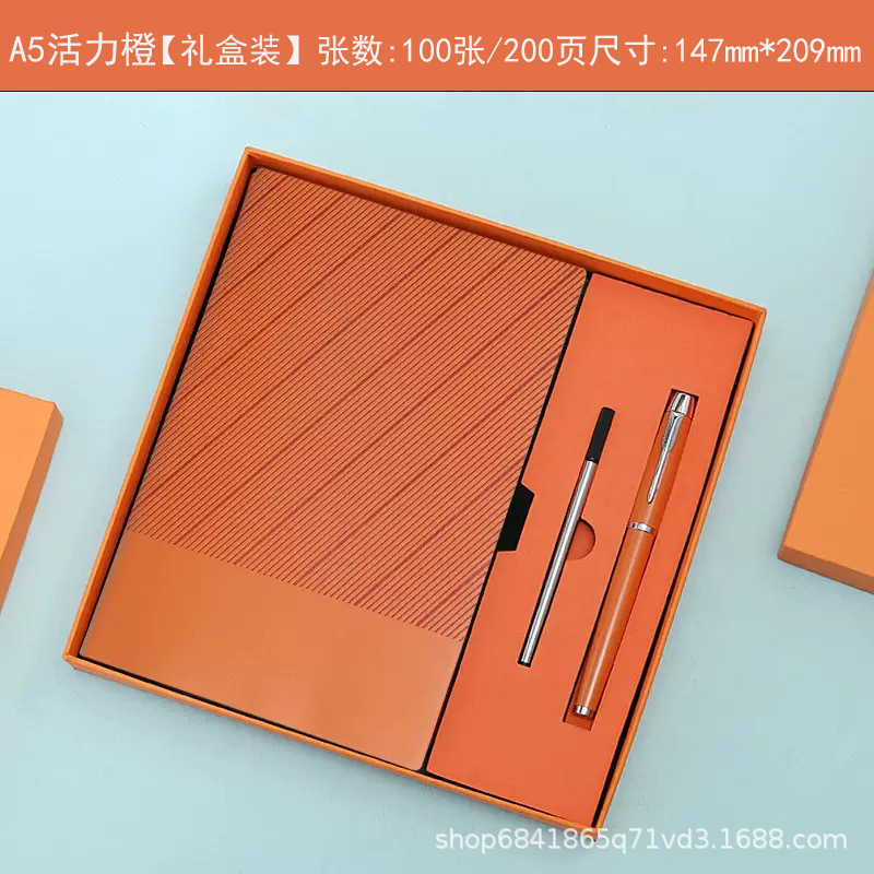 Яркий оранжевый цвет + фирменная ручка + стержень для ручки + подарочный набор + U-диск