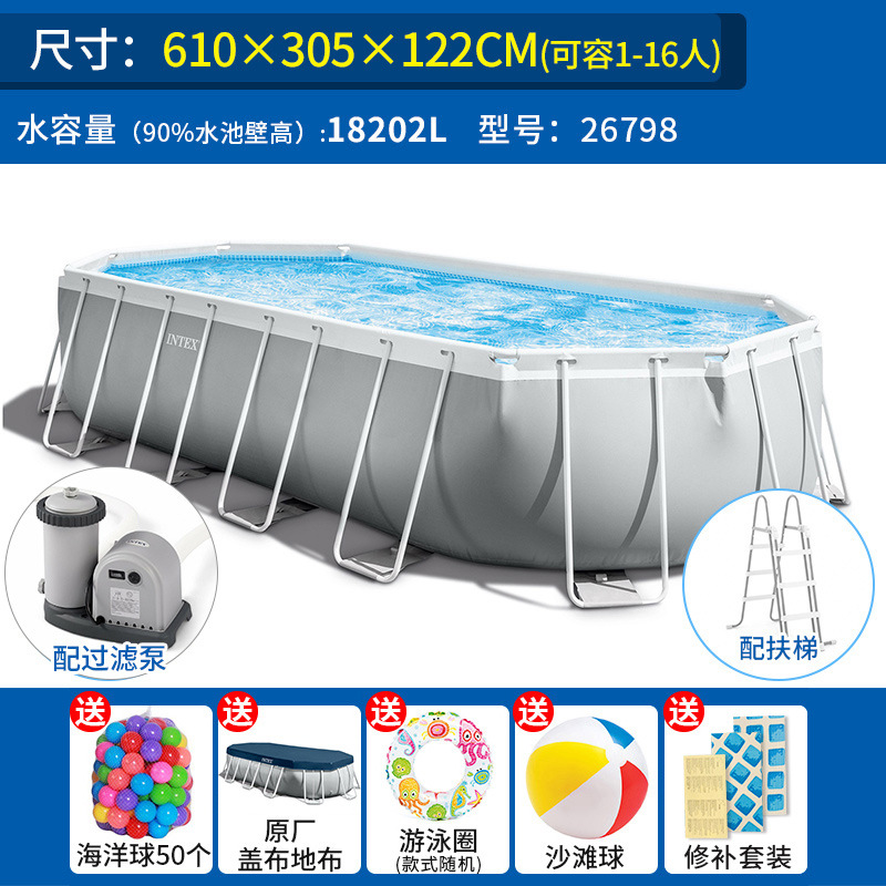 Очень толстая модель длиной 6,0 м * шириной 3,0 м * высотой 1,22 м + фильтрующий насос + фильтрующий элемент + эскалатор + покрытие + заземляющая ткань