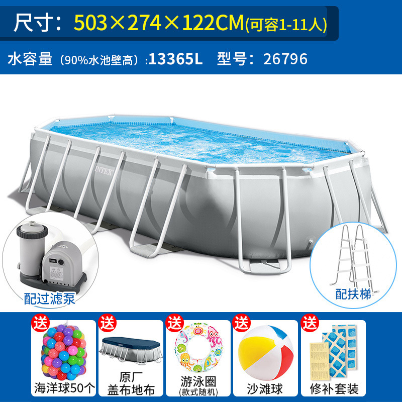Очень толстая модель длиной 5,0 м * шириной 2,74 м * высотой 1,22 м + фильтрующий насос + фильтрующий элемент + эскалатор + покрытие + заземляющая ткань