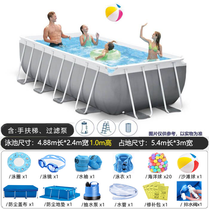 Очень толстая модель длиной 4,88 м * шириной 2,44 м * высотой 1,0 м + фильтрующий насос + фильтрующий элемент + эскалатор + покрытие + заземляющая ткань