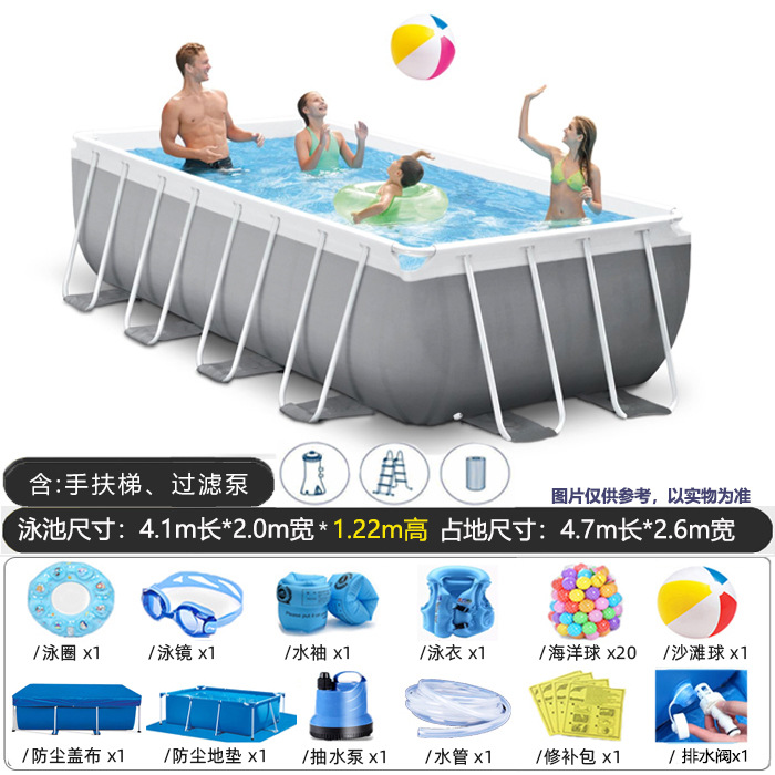Очень толстая модель длиной 4,1 м * шириной 2,0 м * высотой 1,22 м + фильтрующий насос + фильтрующий элемент + эскалатор