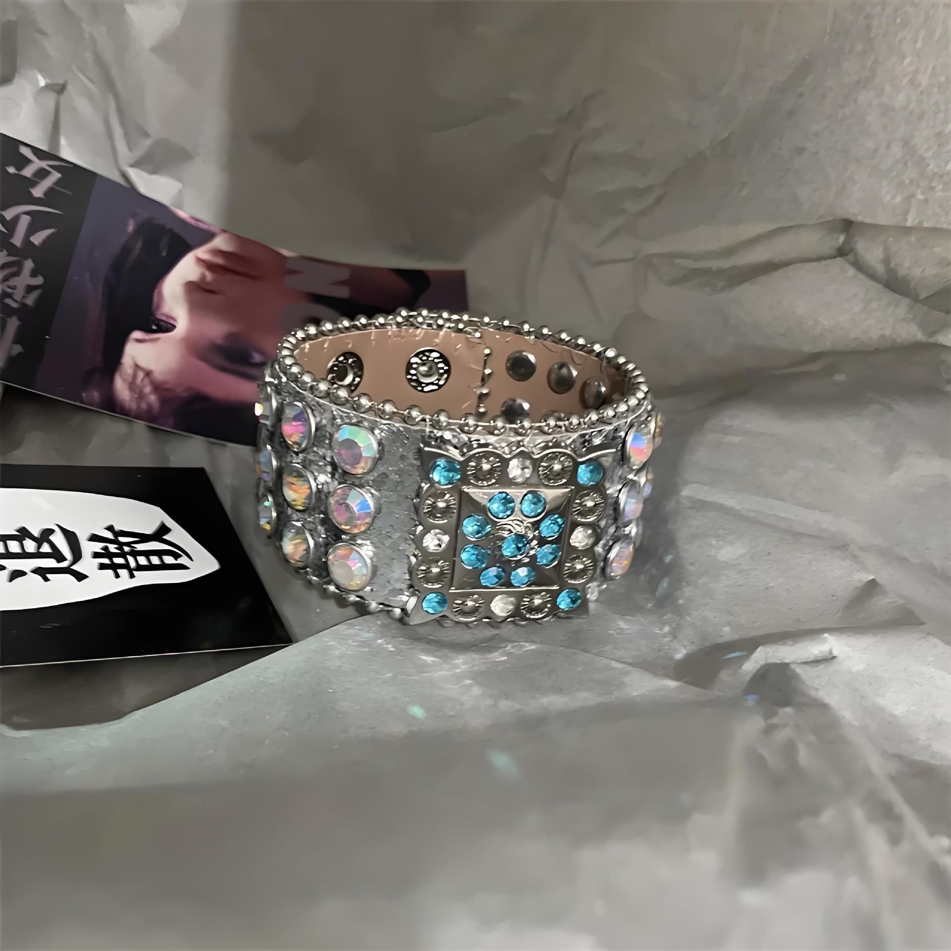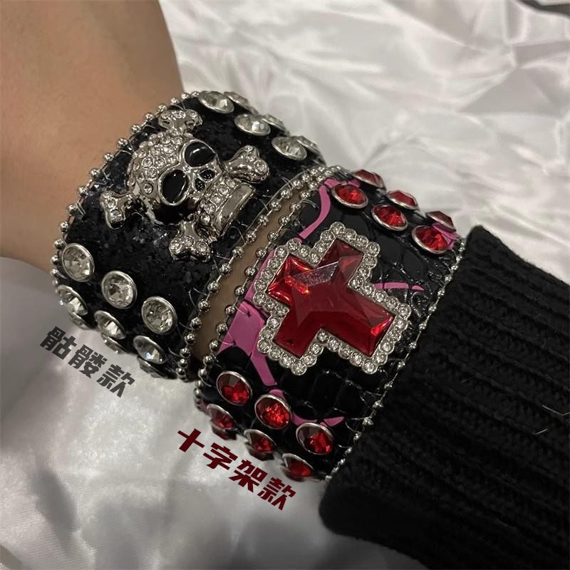 Главная страница > Европейский и американский панк-хип-хоп браслет со стразами, сверхмощный широкий браслет в стиле ретро, западный пустынный сексуальный кожаный браслет на кнопке