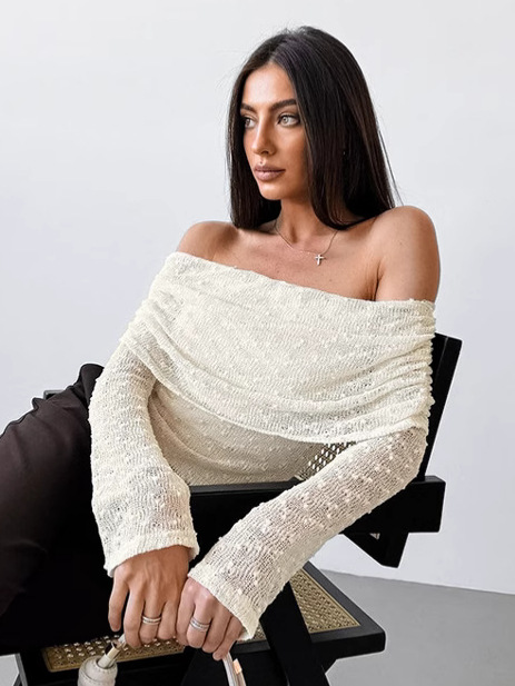 Главная страница > Женский топ с абрикосовым цветом, французским воротником-стойкой и кружевом, модная вязаная футболка с коротким низом для весны и лета 2025 года