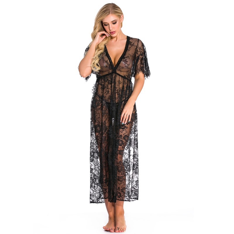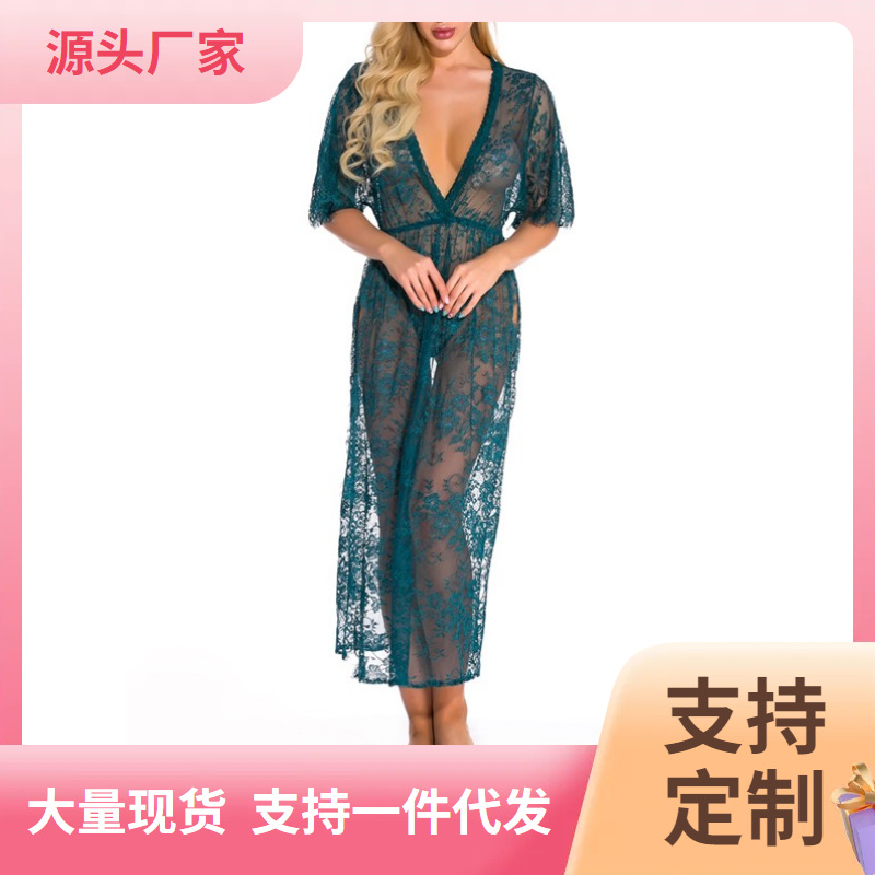 Женское сексуальное нижнее белье, кружевное платье с V-образным вырезом и семиточечными рукавами, сексуальная ночная рубашка, поставка AliExpress