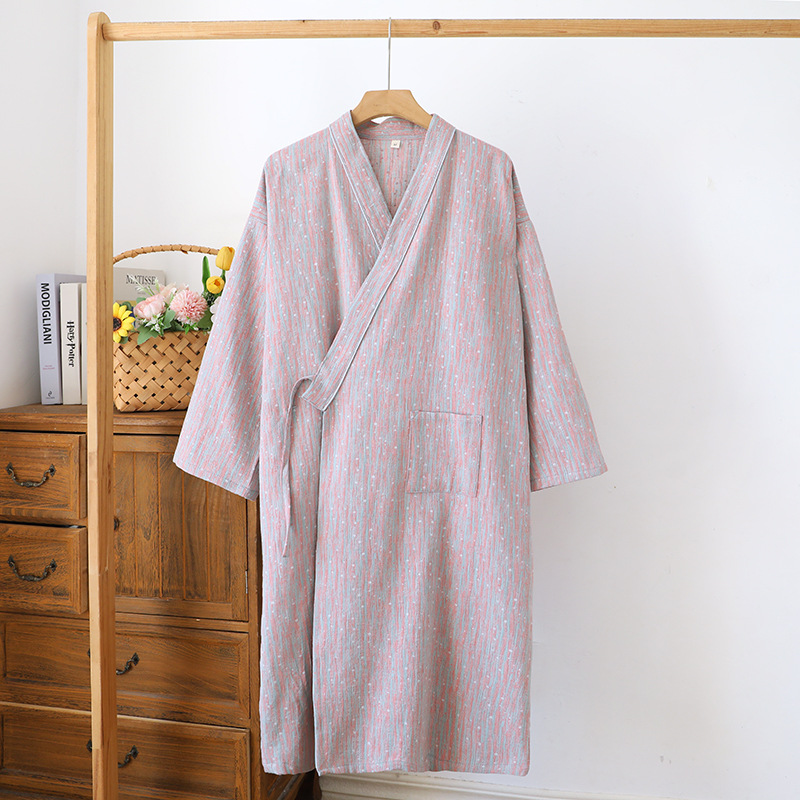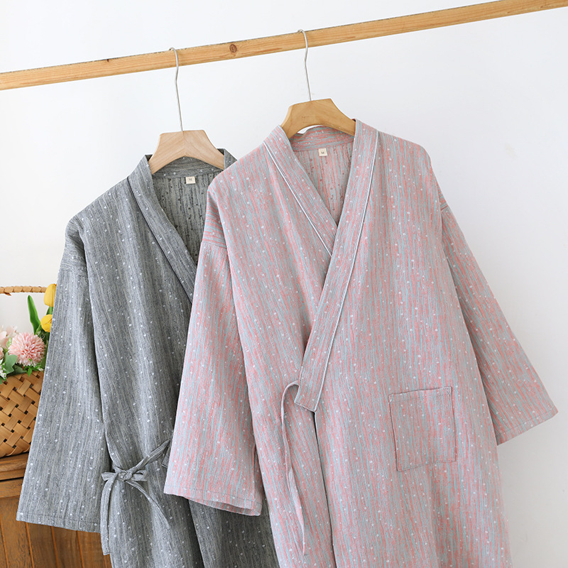Главная страница > Весенне-летний тонкий халат из чистого хлопка, двухслойный марлевый халат, домашняя одежда, ночная рубашка, стиль для пары, водопоглощающий быстросохнущий халат, большой размер