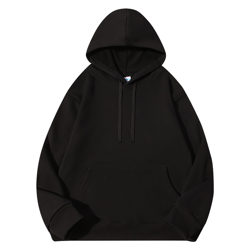 Толстовка из чистого хлопка, 330 г, большая махровая ткань, черная