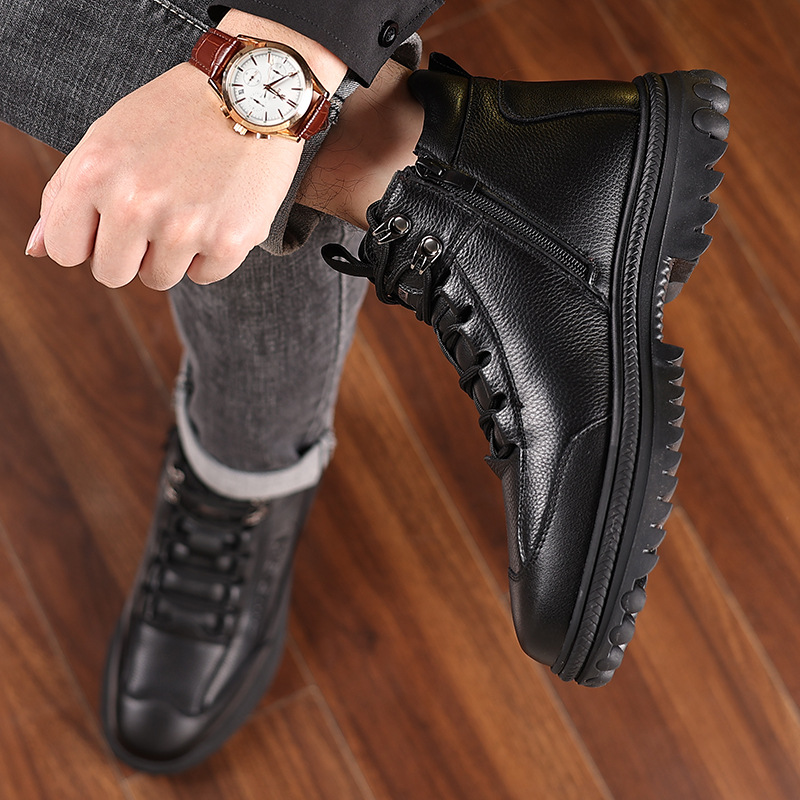 Главная страница > Мужские хлопковые ботинки с верхом из натуральной кожи, новая осенне-зимняя модель, на флисовой подкладке, утолщенные, теплые ботинки-мартинсы, повседневная обувь на мягкой подошве для мужчин.