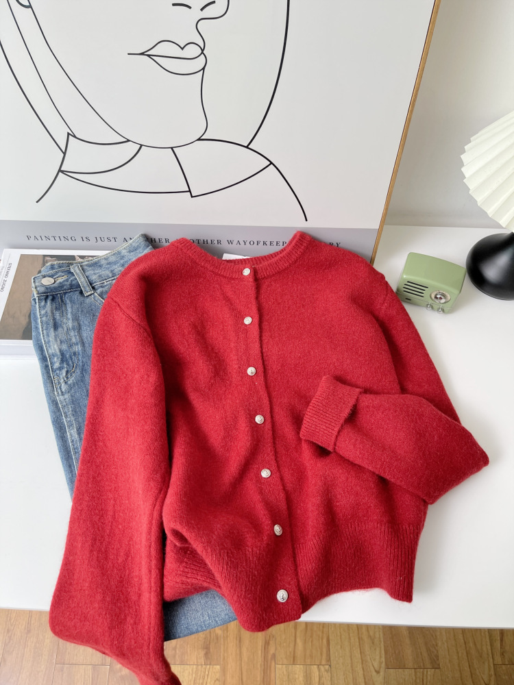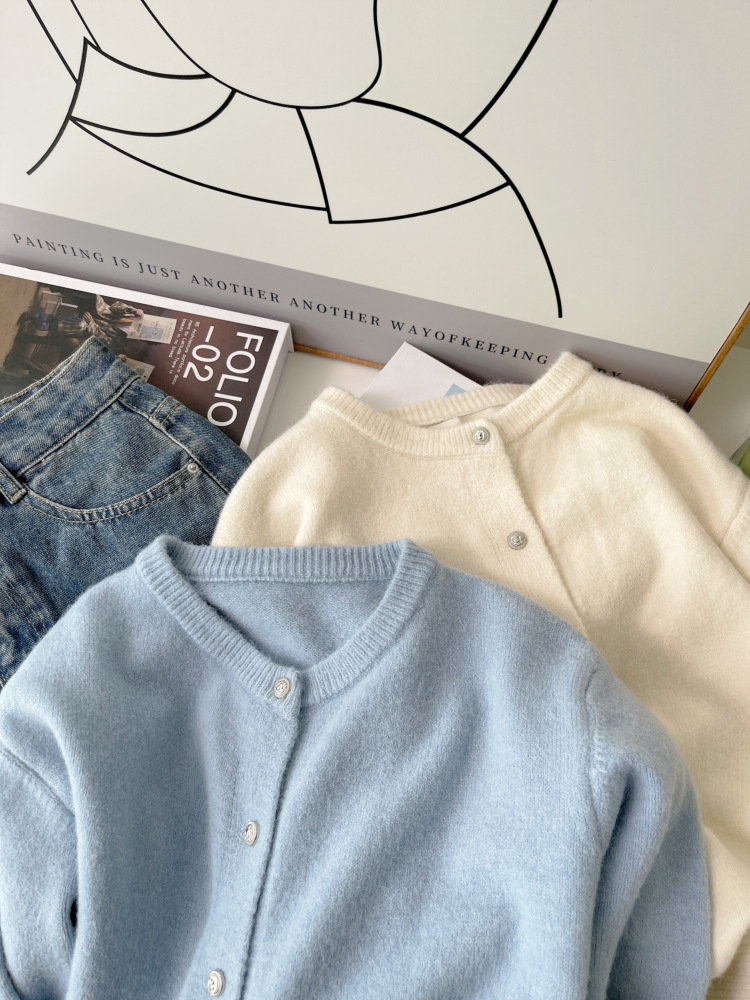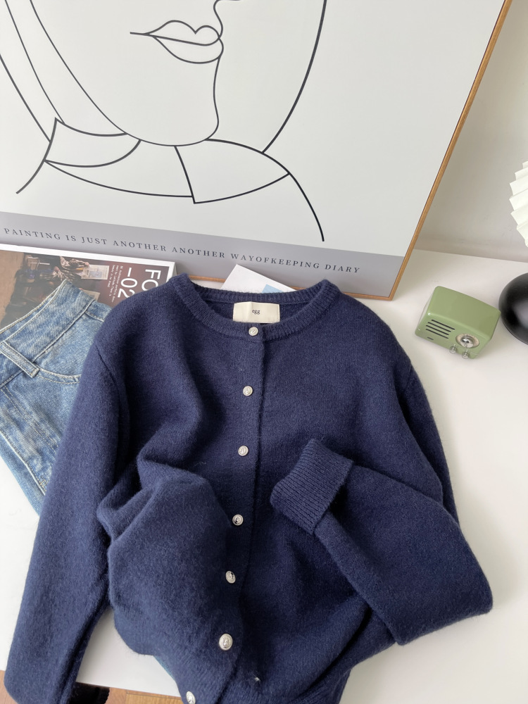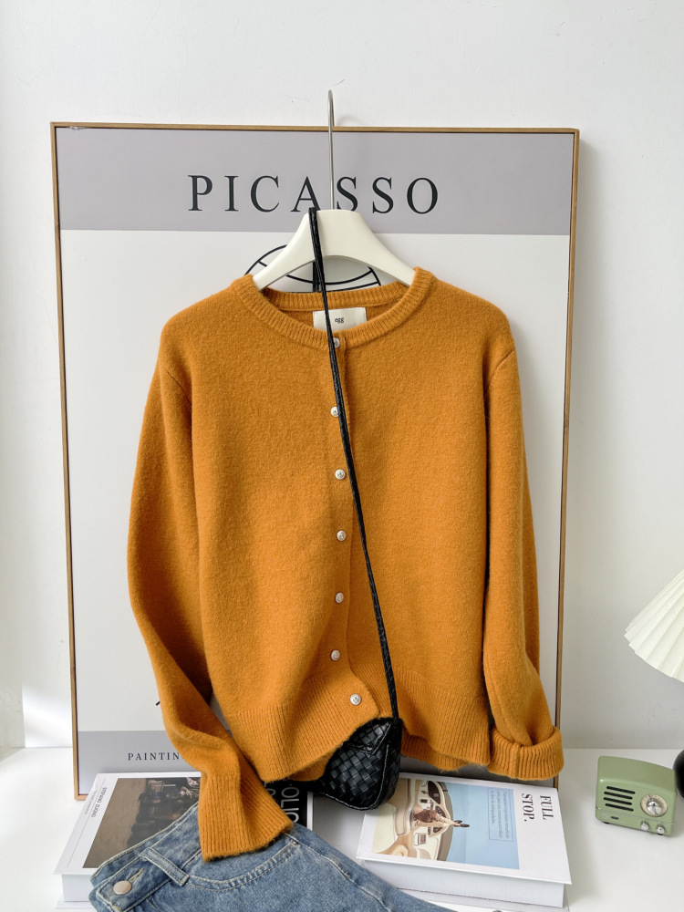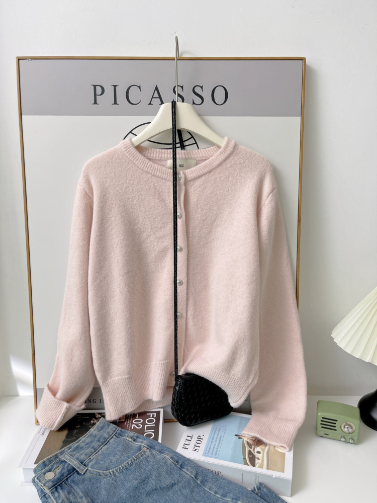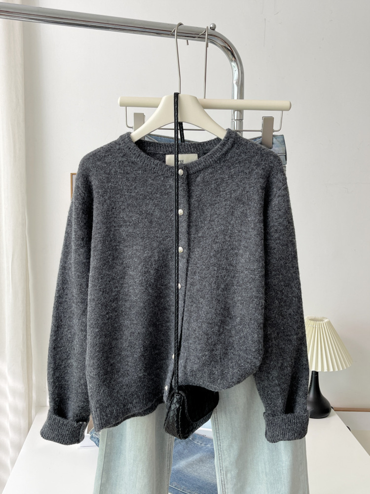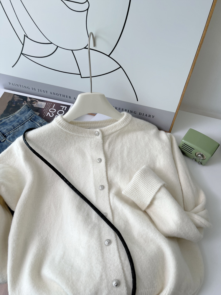 Главная страница > 韩国东大门鸡蛋家上衣开衫女银扣毛衣针织衫2025秋款外套软糯6173