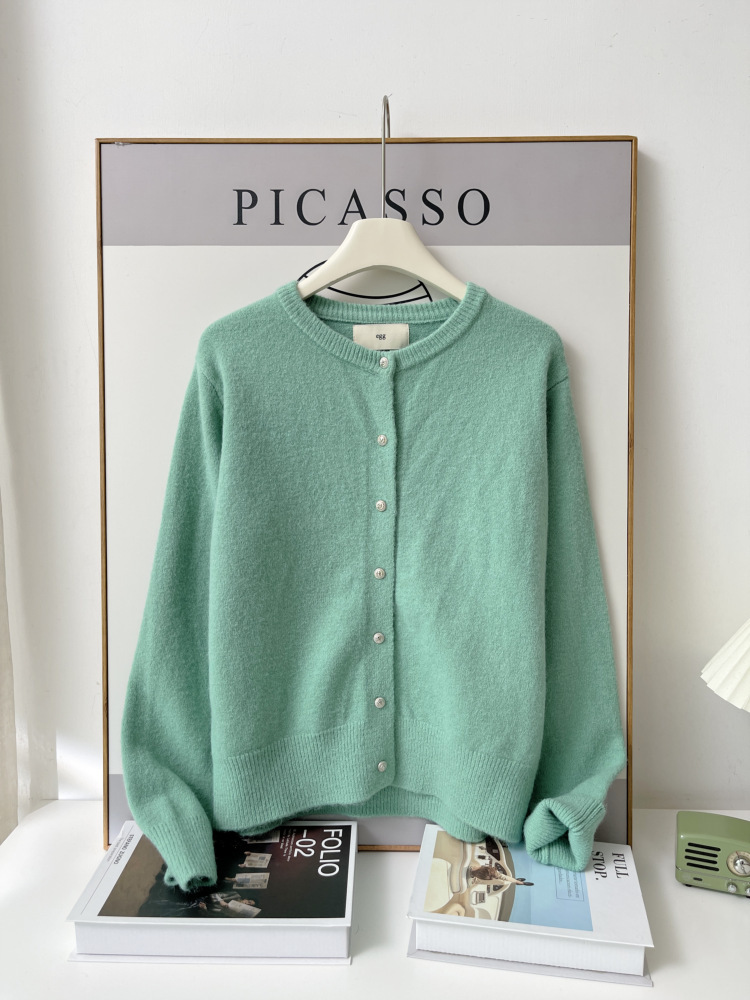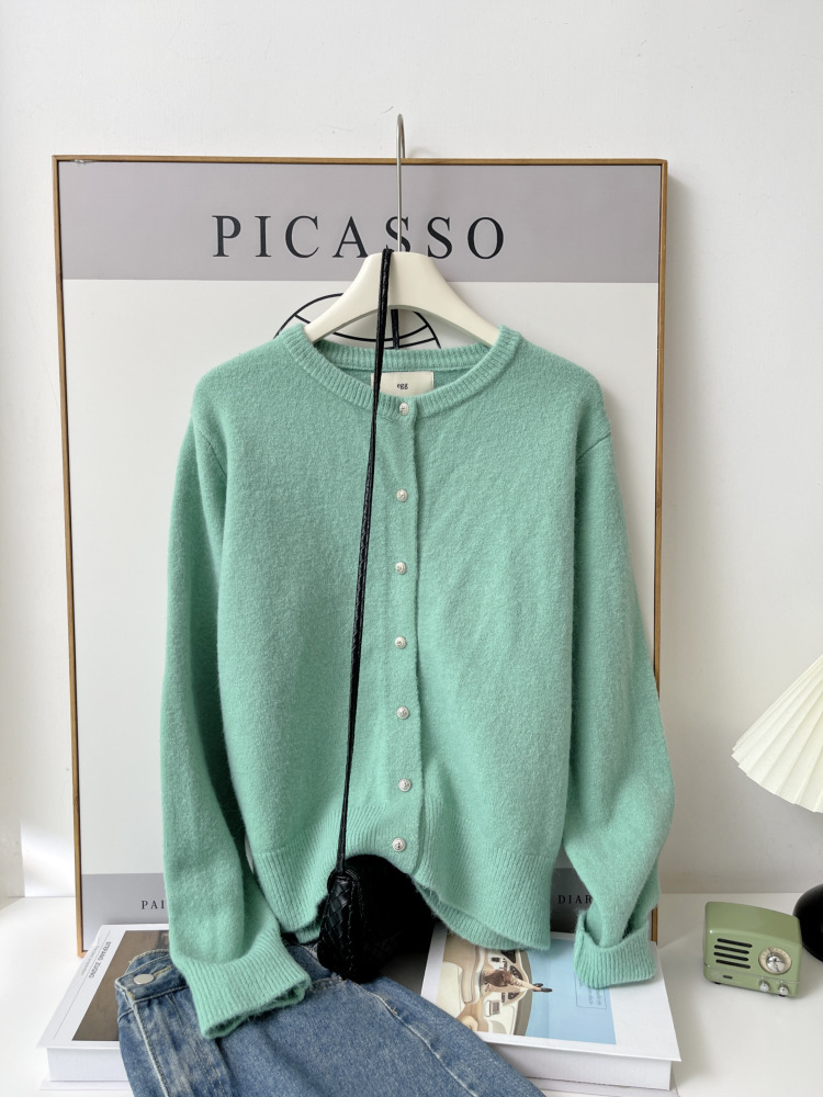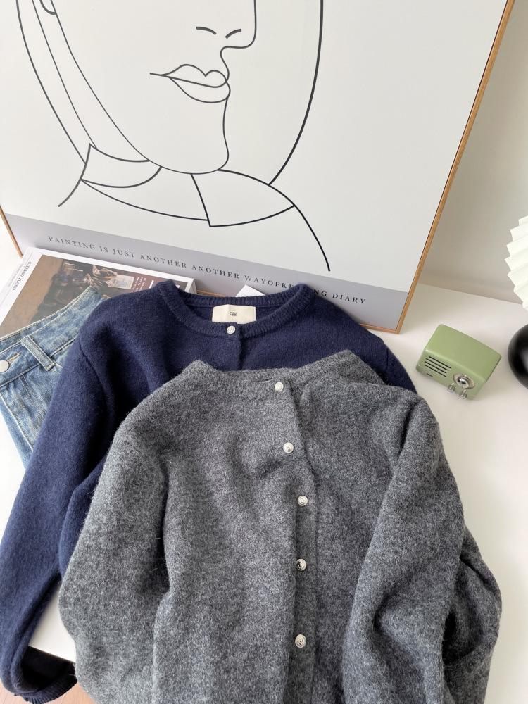 韩国东大门鸡蛋家上衣开衫女银扣毛衣针织衫2025秋款外套软糯6173