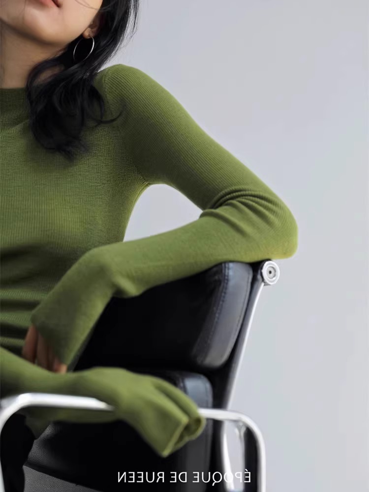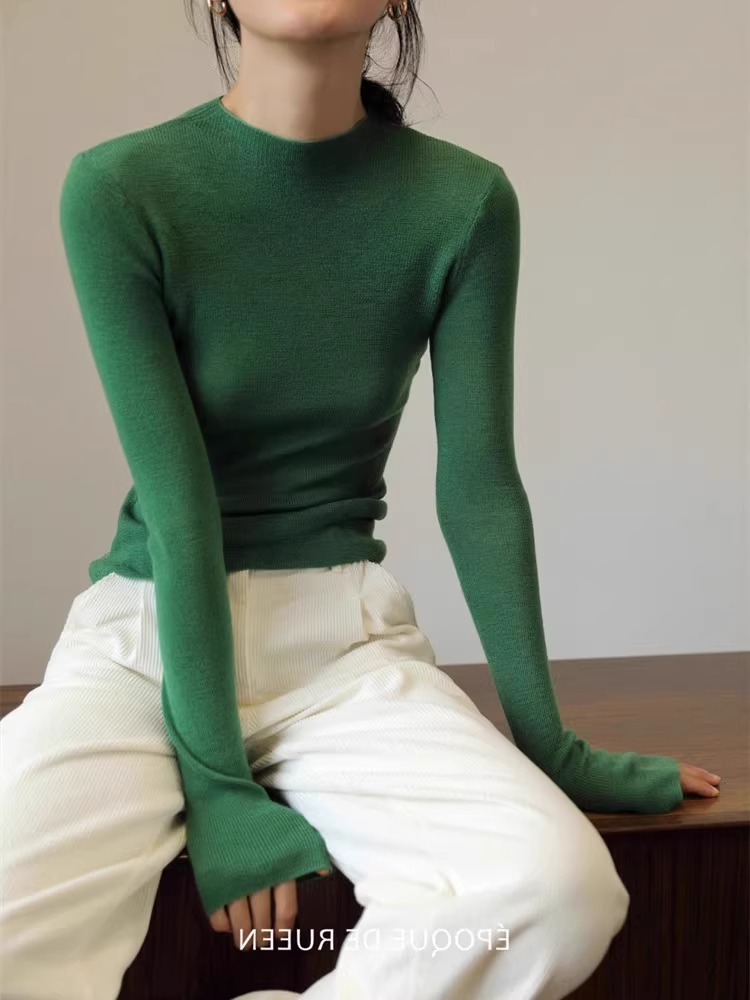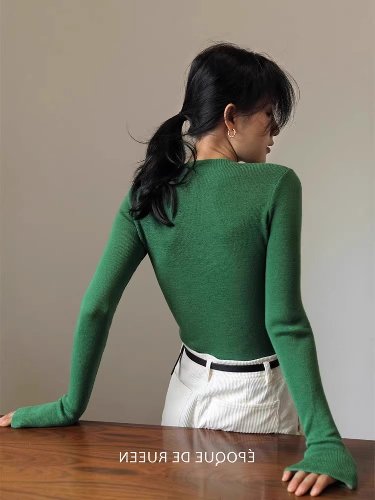 Главная страница > Зеленая трикотажная рубашка с коротким воротом во французском стиле в стиле ретро, женское мягкое клейкое пальто в тон ранней осени, облегающий Топ