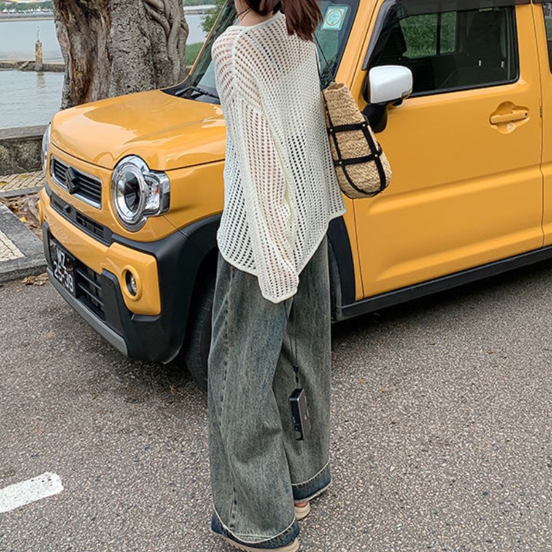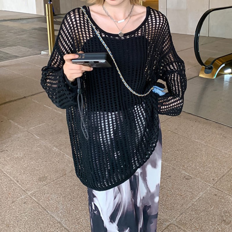 Главная страница > Женский Вязаный топ в ленивом стиле с вырезами, Новое поступление на лето 2023 года, Свободный пуловер, тонкая Солнцезащитная рубашка для маленьких людей
