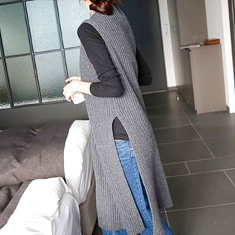 Главная страница > Новая Женская трикотажная одежда для ранней осени, Женский пуловер, средней длины, с вырезом до локтя, внешний свитер с разрезом, жилет, юбка