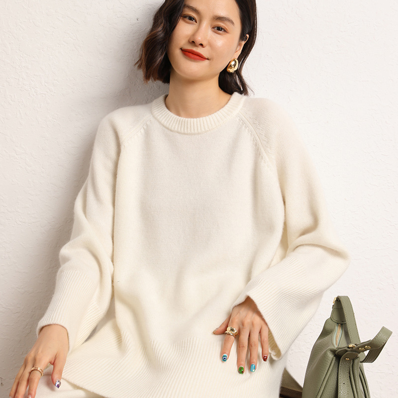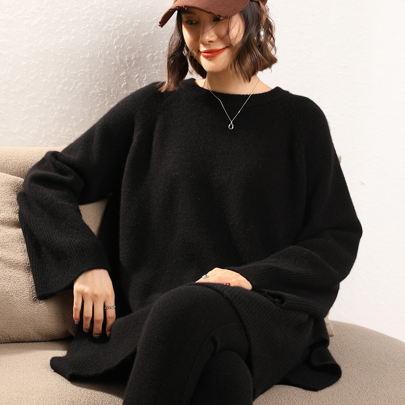 Главная страница > Женский трикотаж больших размеров, свободный крой, круглый вырез, кросс-бордерный стиль, осень-зима 2025, новая повседневная модель с разрезом по низу.
