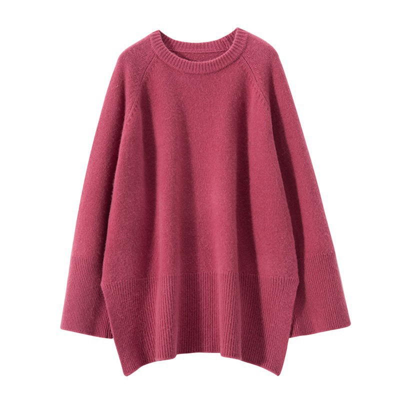 Женский трикотаж больших размеров, свободный крой, круглый вырез, кросс-бордерный стиль, осень-зима 2025, новая повседневная модель с разрезом по низу.