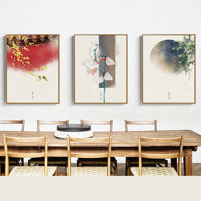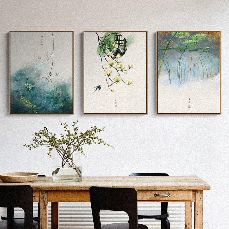Новая декоративная живопись для чайной комнаты в китайском стиле, вертикальное издание, двадцать четыре солнечных термина, гостиная, кабинет, настенная роспись, проживание в семье, тройная подвесная картина