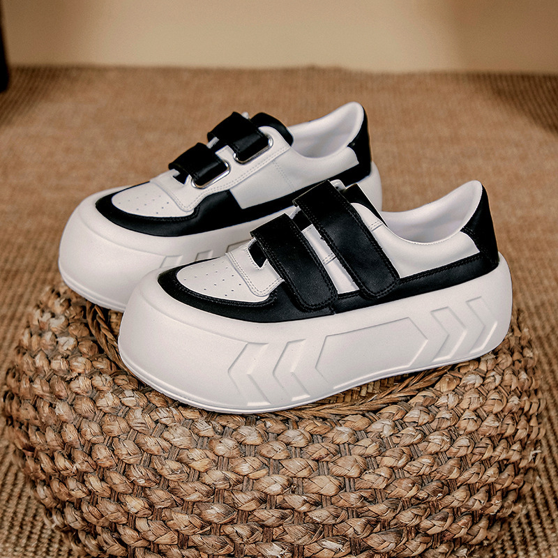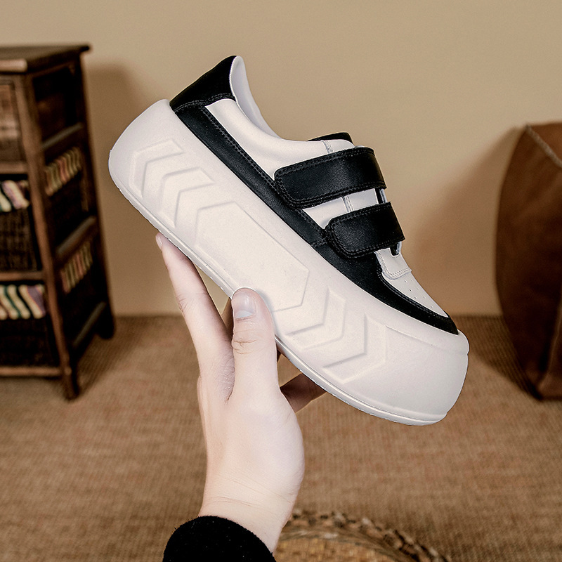 Главная страница > Новые белые кроссовки из коровьей кожи 2025 года с толстой подошвой, универсальные повседневные платформенные туфли, увеличивающие рост, женские лоферы на липучке.