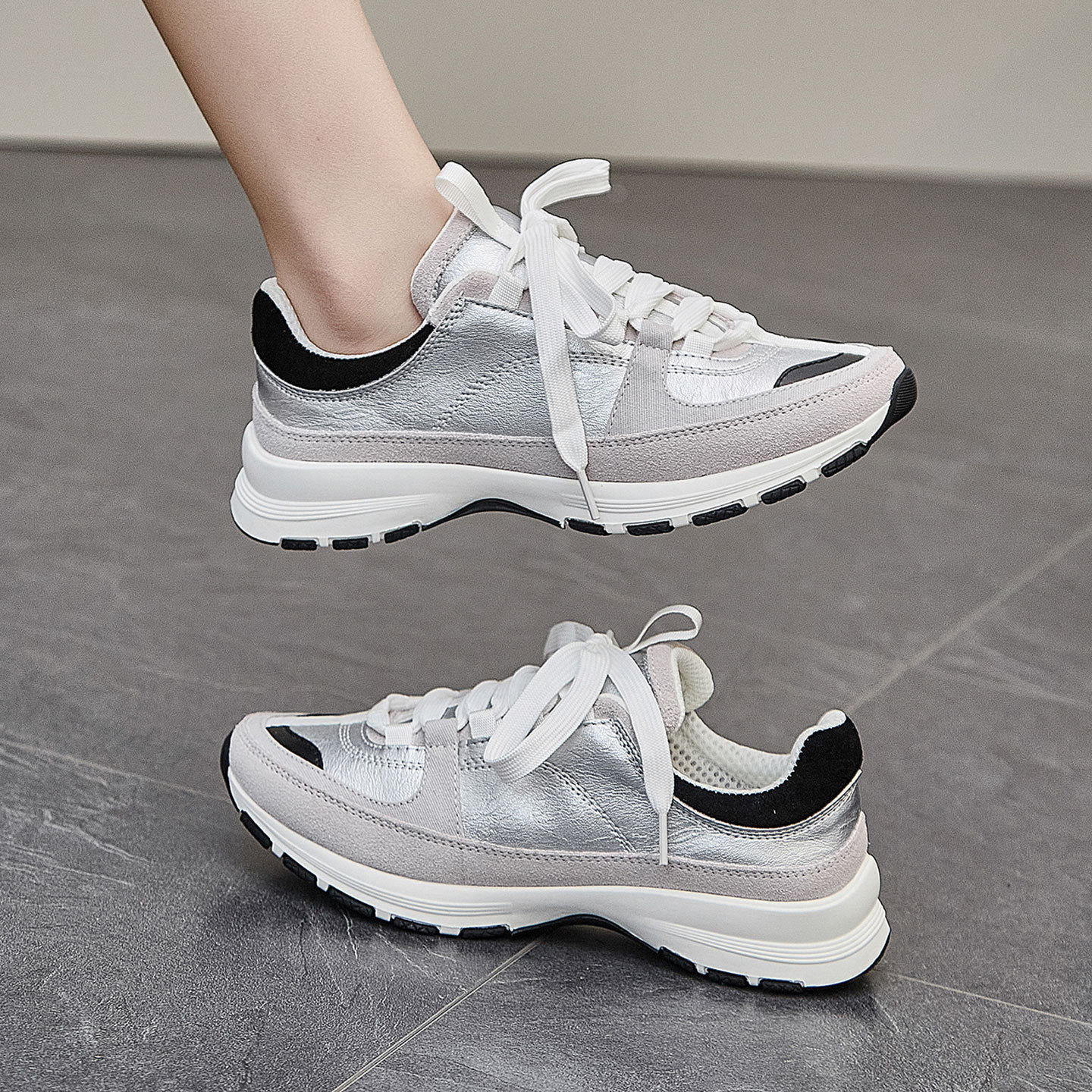 2025 Лето и осень, новый стиль, маленькие ароматные цвета, туфли для папы на толстой подошве, женские повседневные спортивные туфли из натуральной кожи с пандой Campus