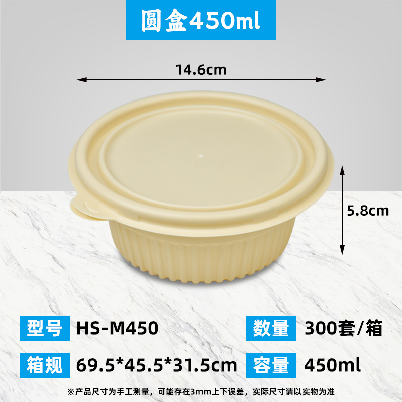 Кукурузный крахмал ланч-бокс 450 круглый разлагаемый одноразовый вынос упаковщик утолщенный с крышкой Экологичная коробка быстрого питания
