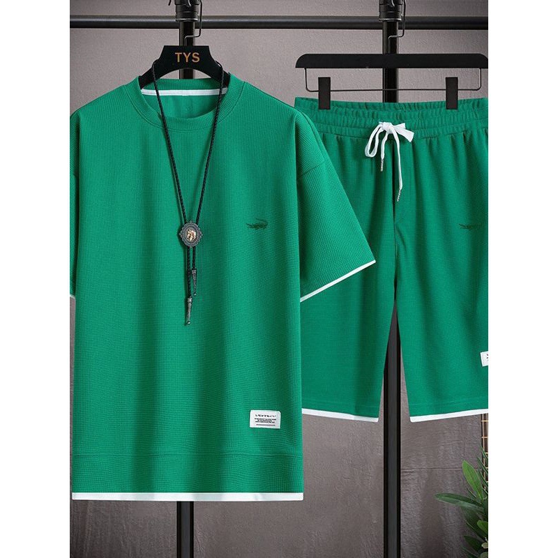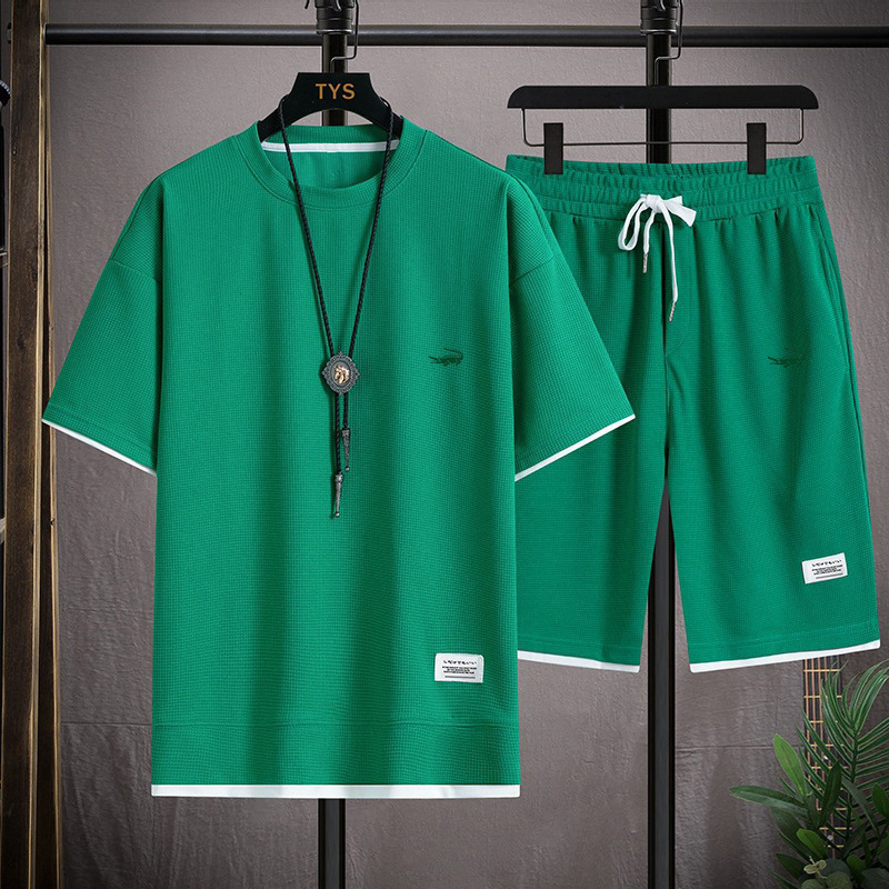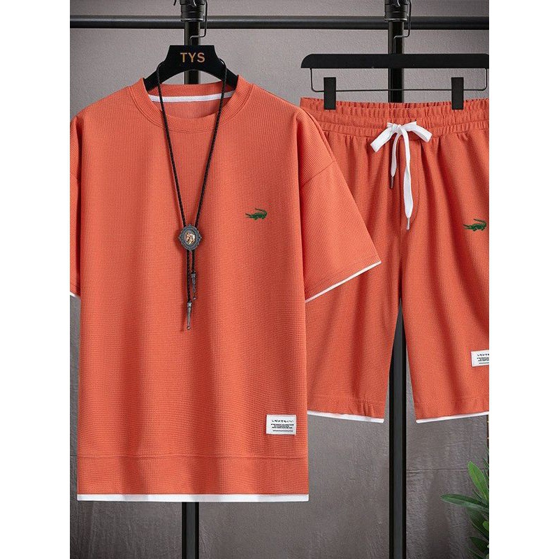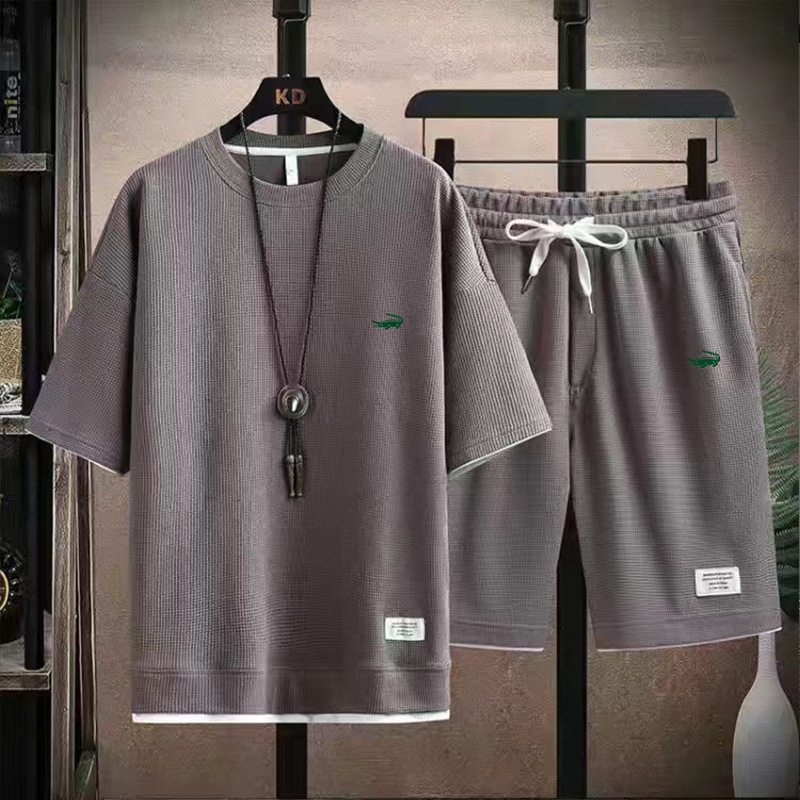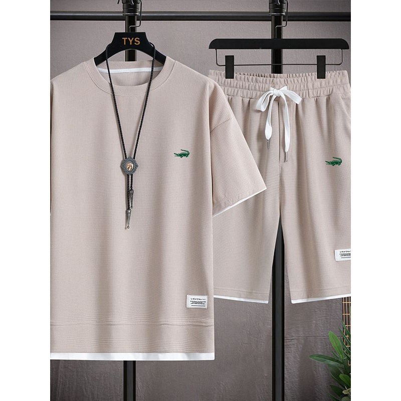 Главная страница > 2024 вафли с коротким рукавом футболка для мужчин повседневный спортивный набор оптовая продажа летнее свободное поддельные две футболки с половинным рукавом