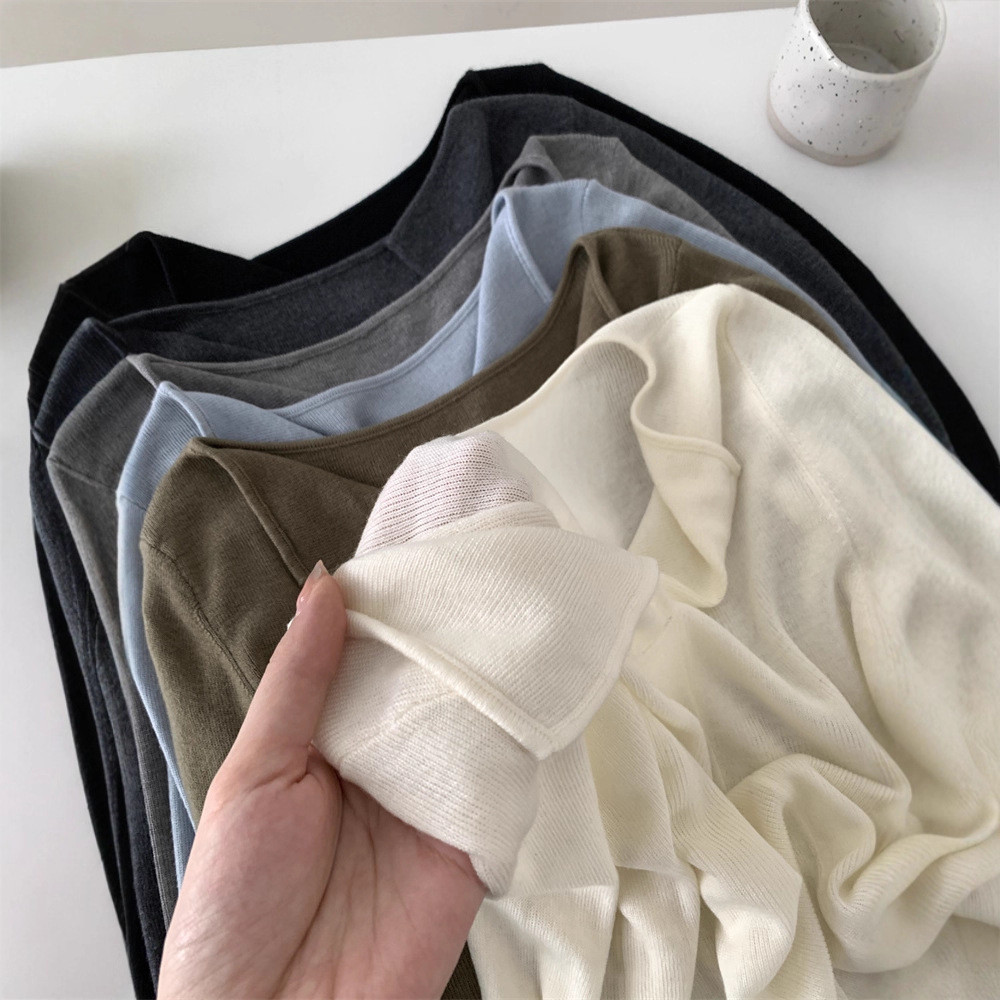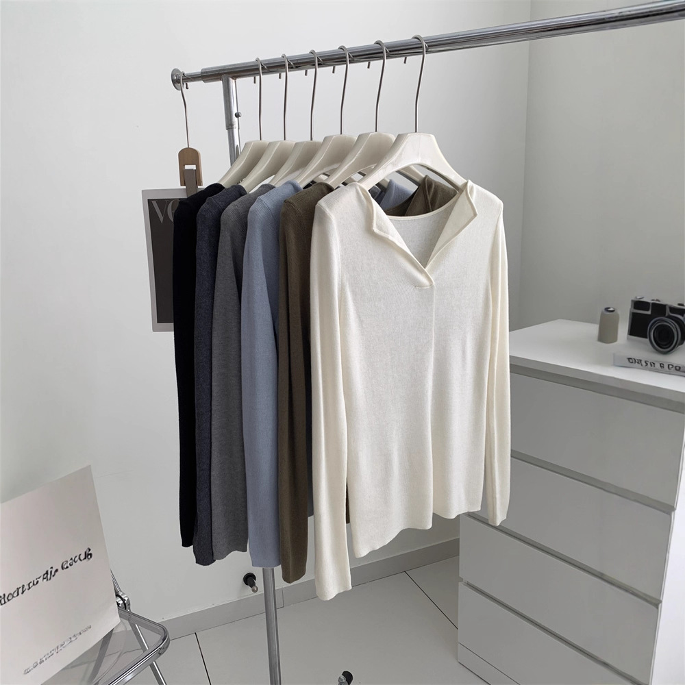 Главная страница > Элегантный и универсальный женский вязаный свитер из шелковой шерсти, тонкий облегающий свитер для весны и осени, стильная базовая рубашка с V-образным вырезом.