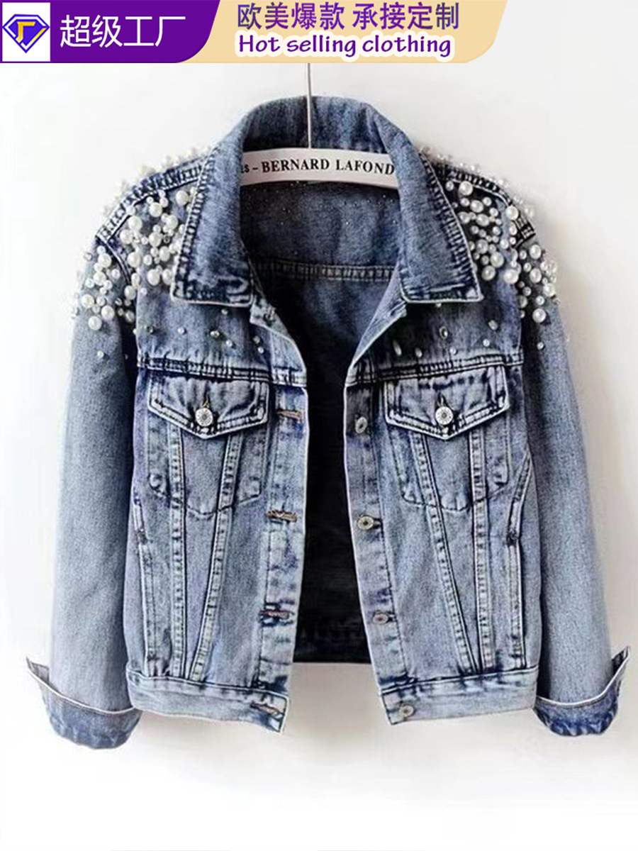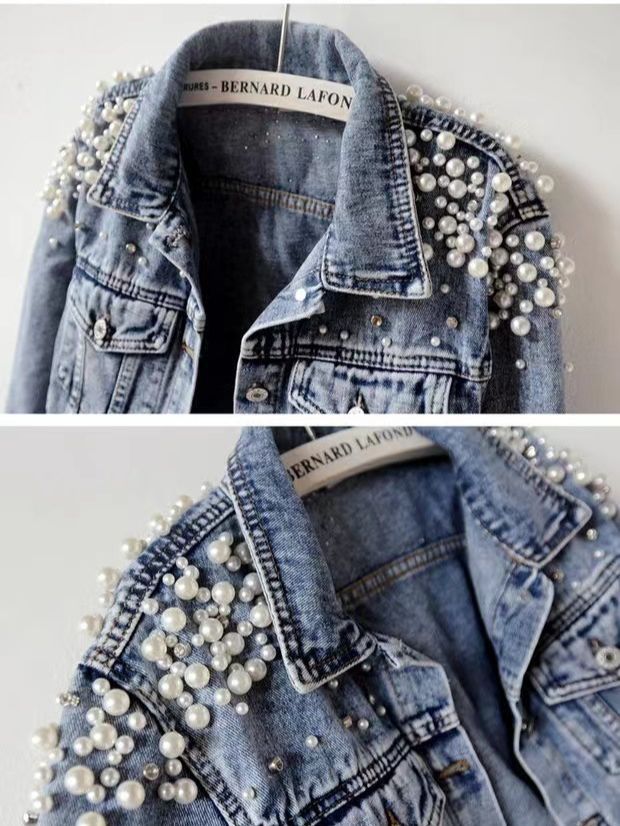 Главная страница > Ja Jun Spring и осень корейская модная бисерная короткая джинсовая куртка женская куртка с длинными рукавами