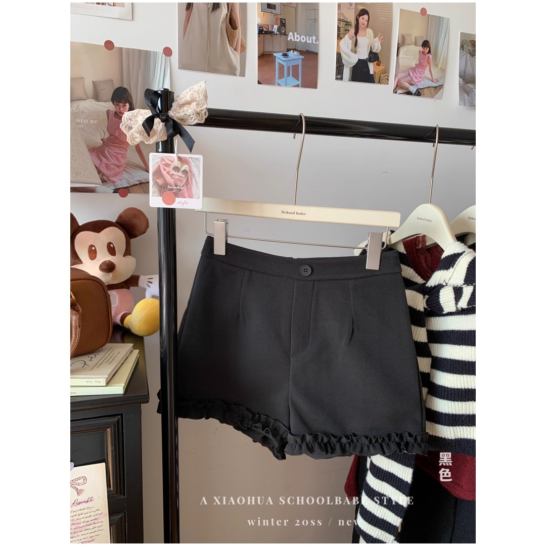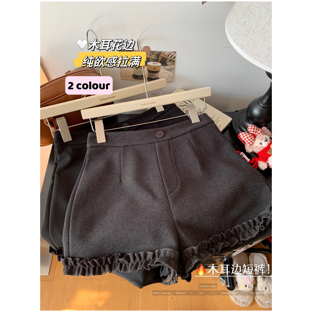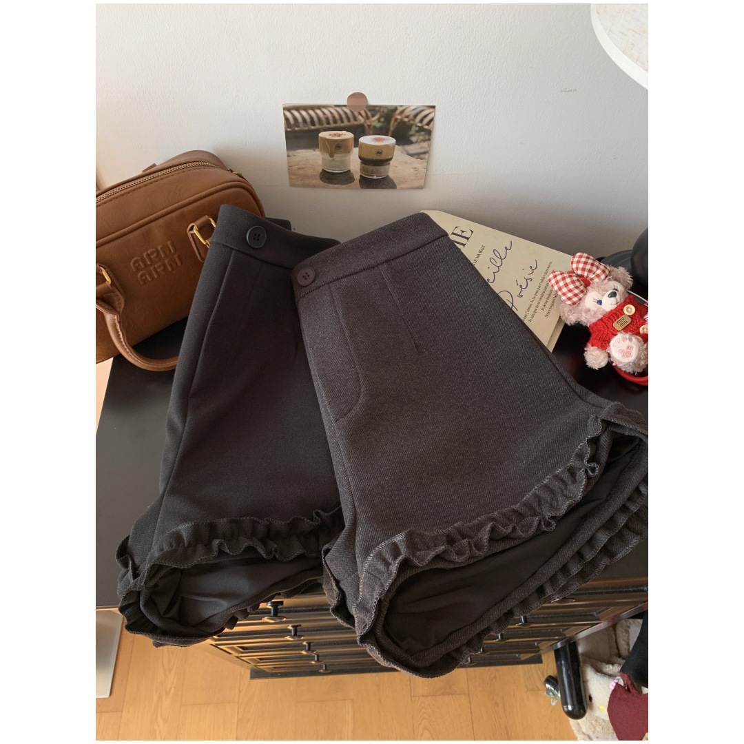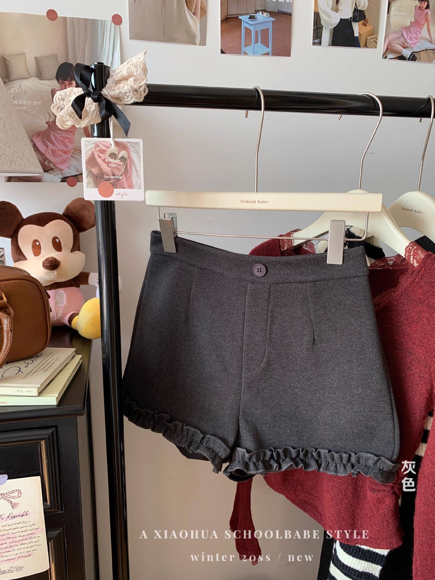 Главная страница > Серые шерстяные шорты с рюшами и фигурой груши для женщин, летние шорты трапециевидной формы с высокой талией и широкими штанинами в корейском стиле для похудения